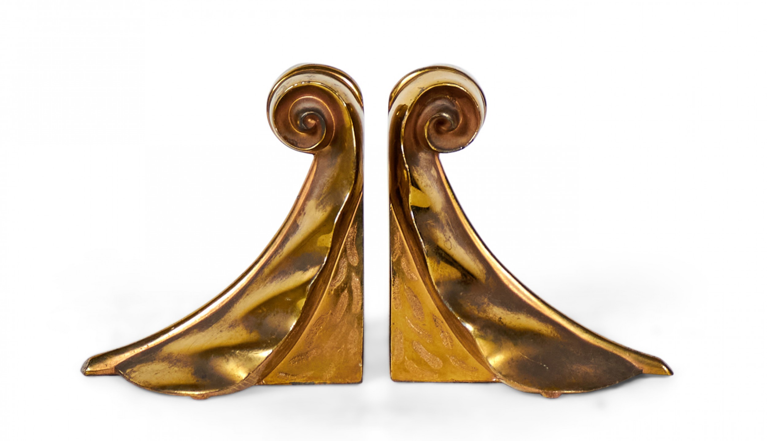 PAIR of Neoclassical-style brass foliate bookends with acanthus leaf forms (PRICED AS PAIR).