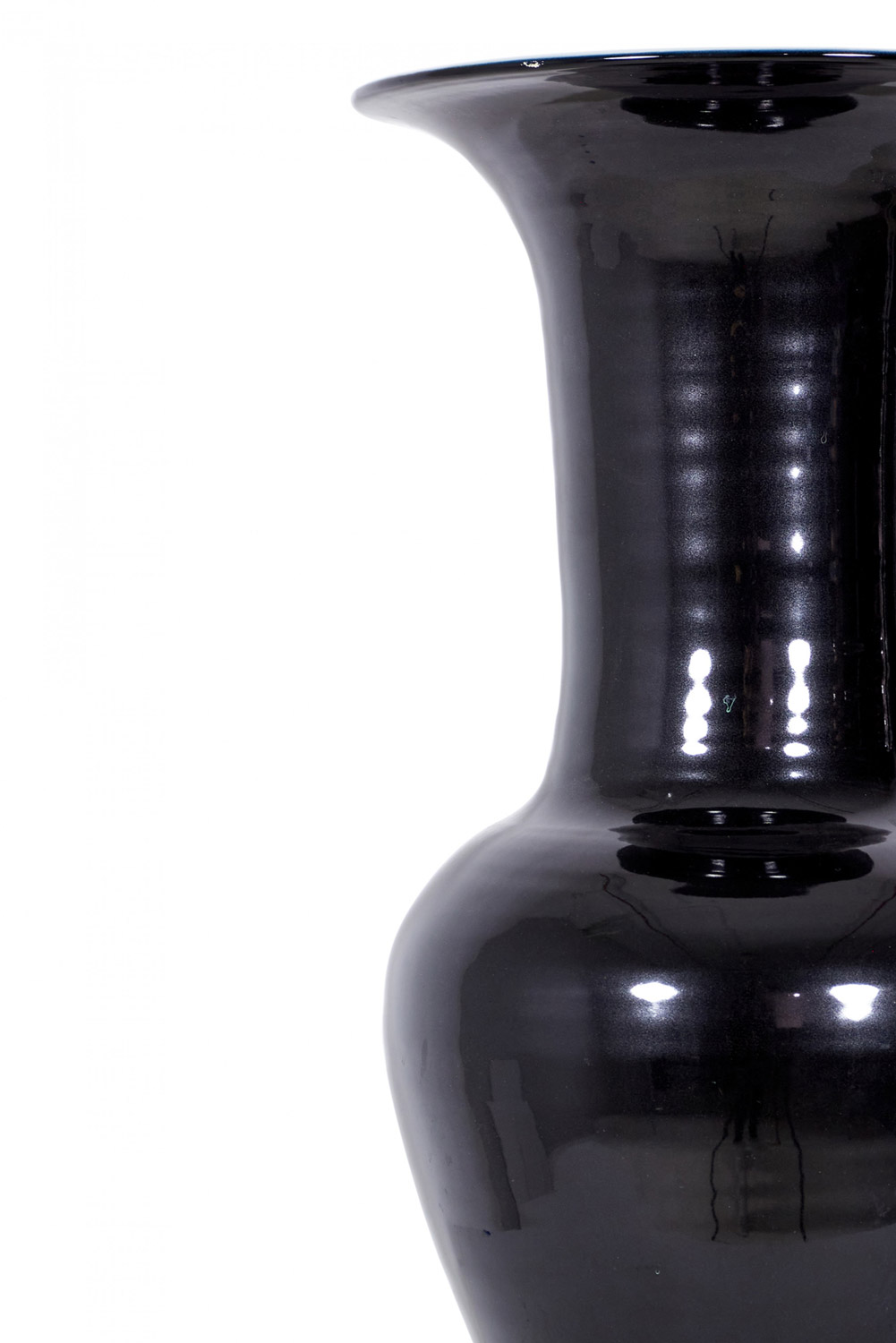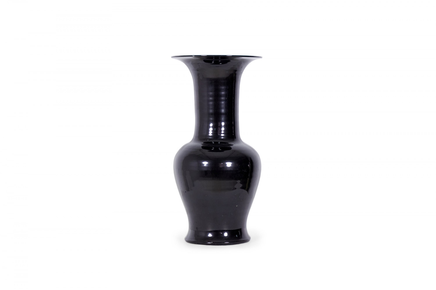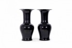 Pair of Antique Chinese Black Glazed Phoenix-Tail Form Porcelain Vases