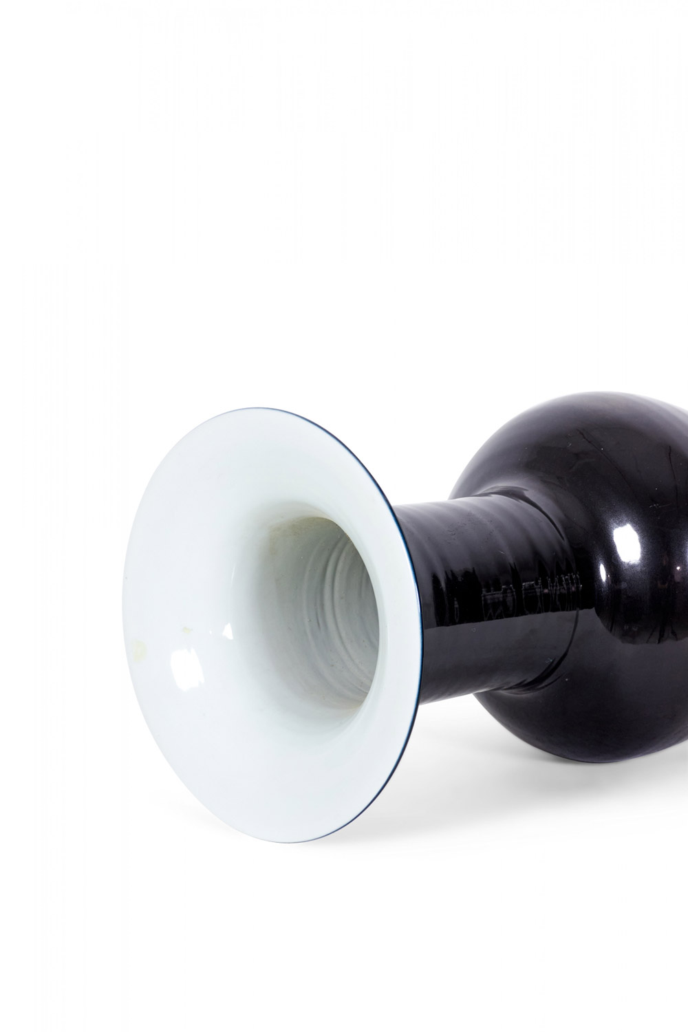 PAIR of Antique Chinese (late 19th-early 20th Century) porcelain phoenix tail-form vases with black glazed exteriors and white interiors (PRICED AS PAIR).
