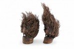 Pair of Chinese Bamboo Root Carved Peacock Sculptures