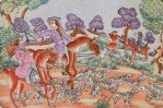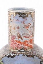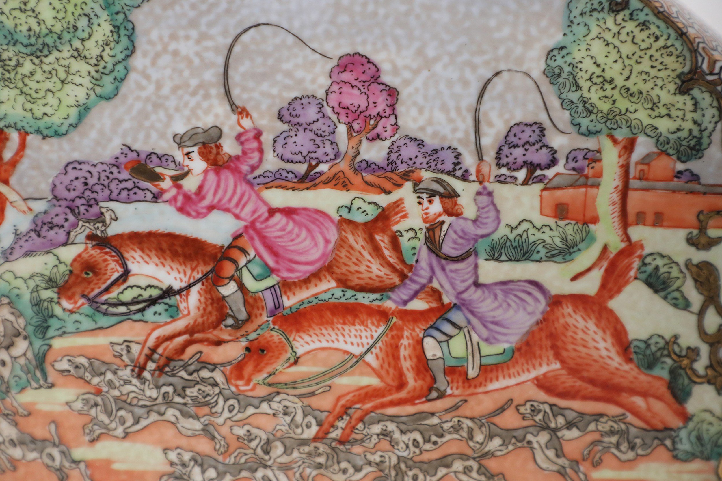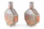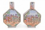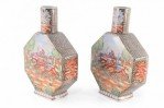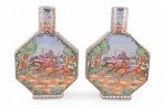 Pair of Chinese Guangzhou Dog Hunt Scene Moonflask Porcelain Vases