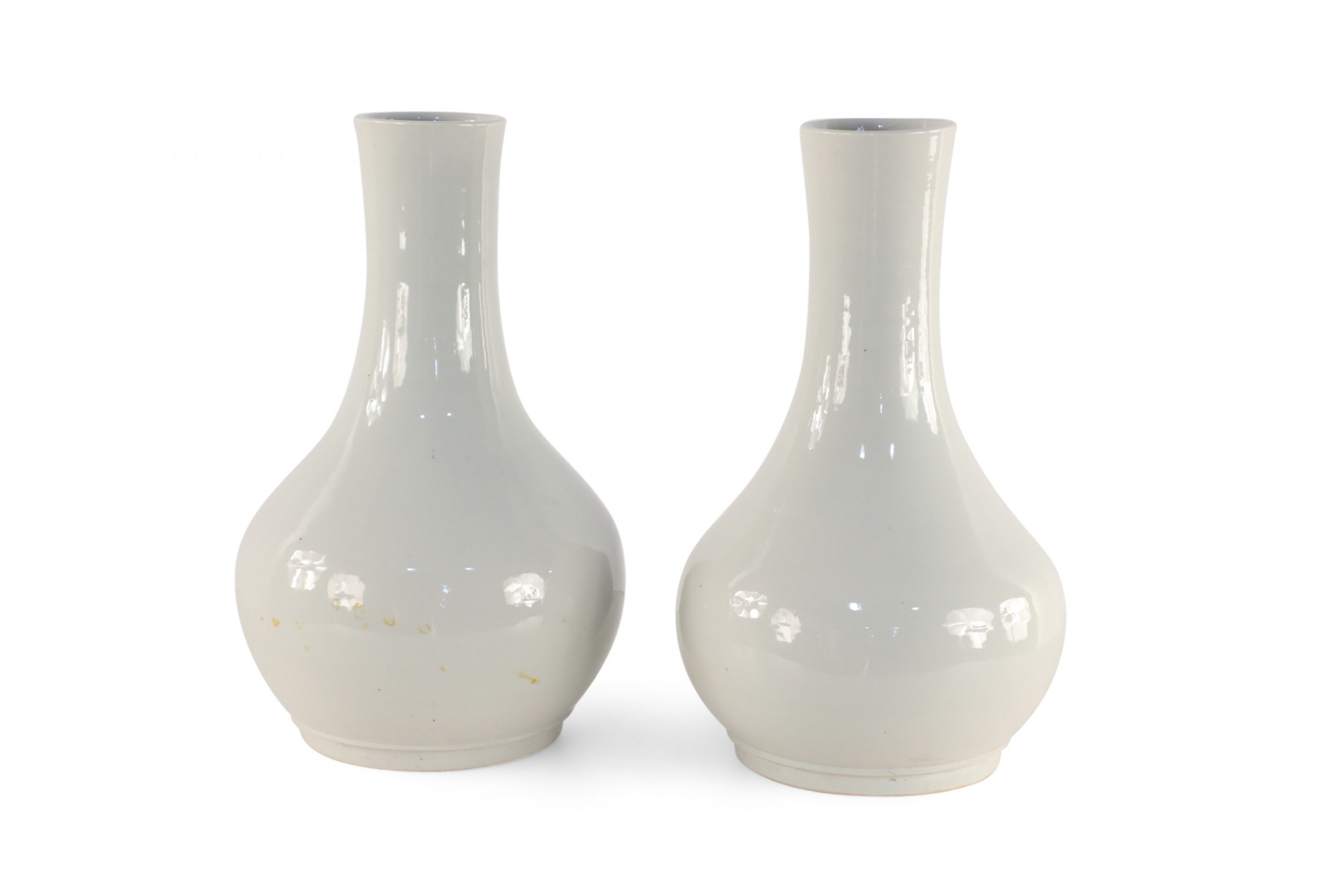 PAIR of similar Chinese porcelain vases with globular forms in pale gray hues with glazed finishes (vases vary slightly in shape) (PRICED AS PAIR)..