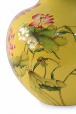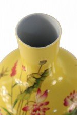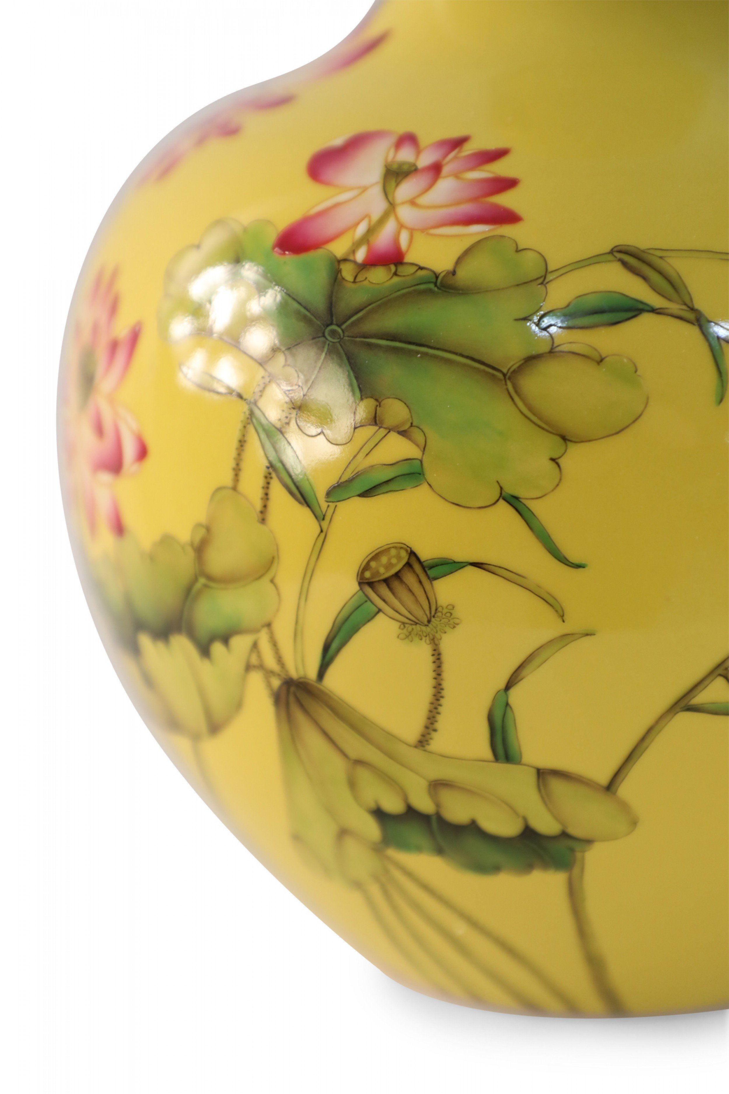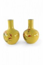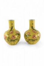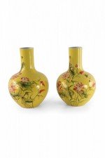 Pair of Chinese Qing Dynasty Style Famille Rose Yellow Porcelain Vases