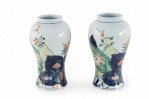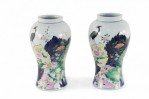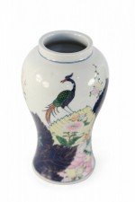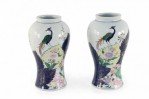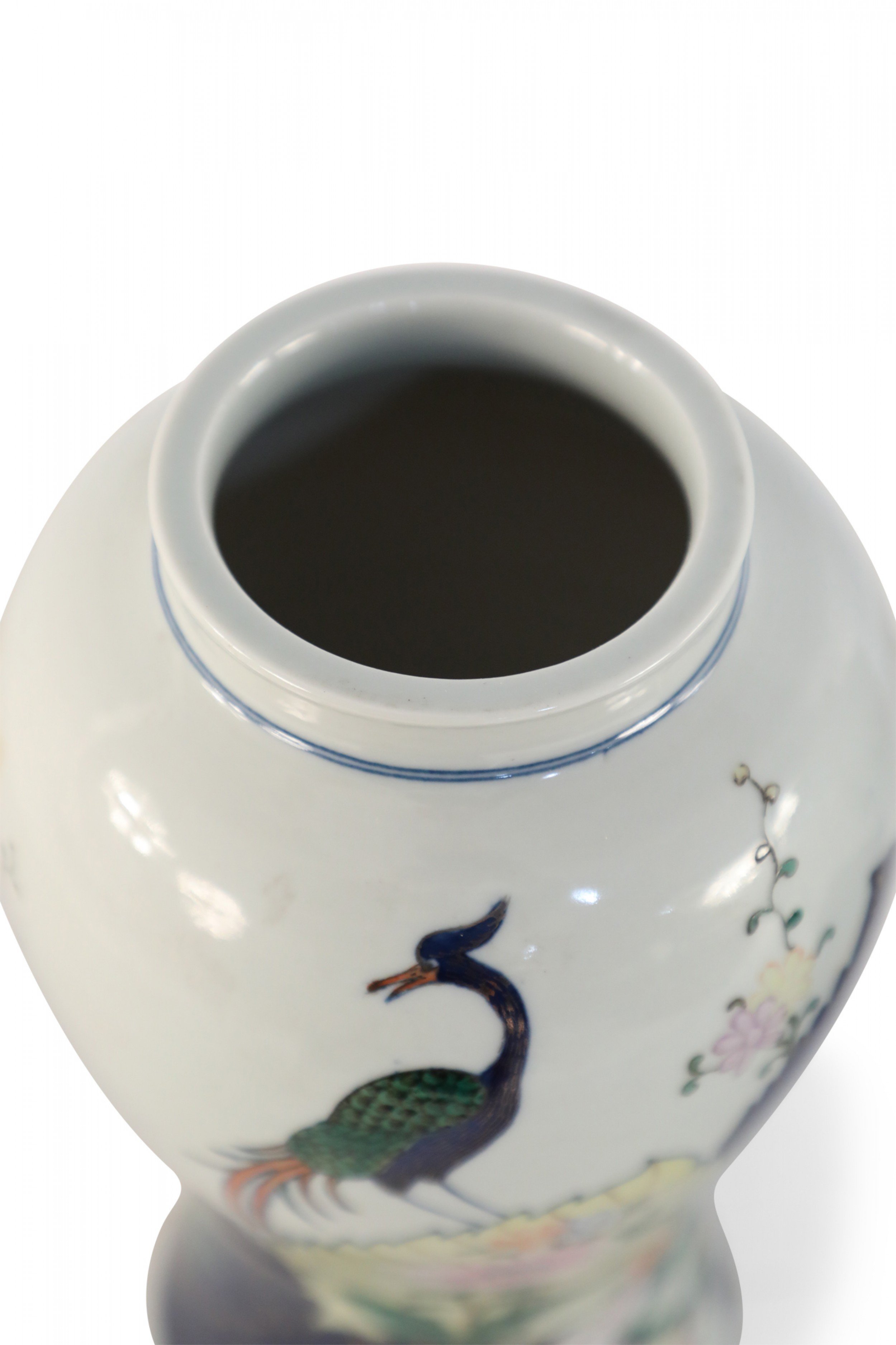 Pair of Chinese White Peacock and Floral Design Urn-Shaped Porcelain Vases
