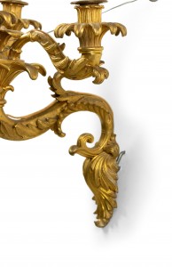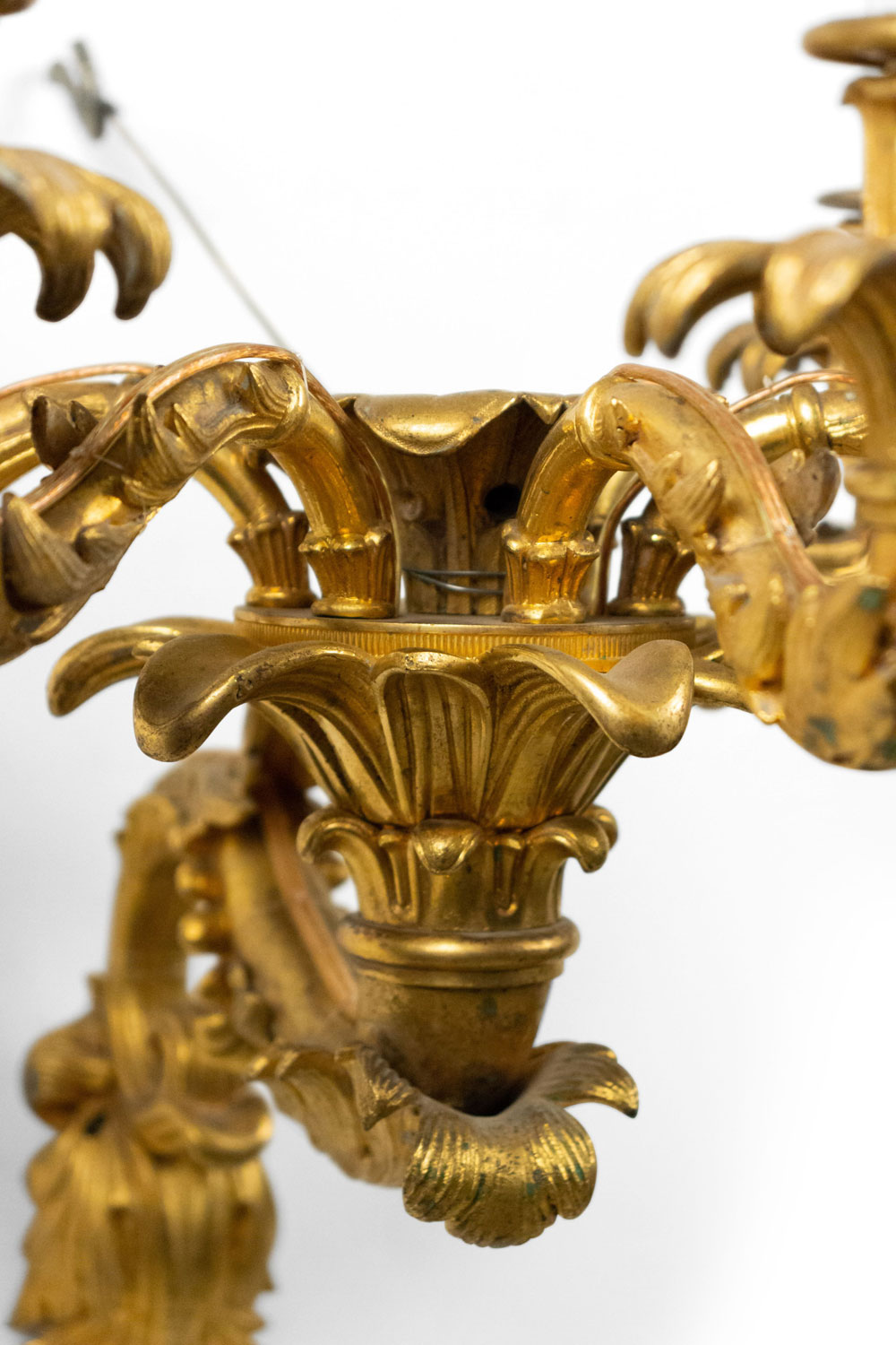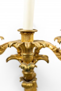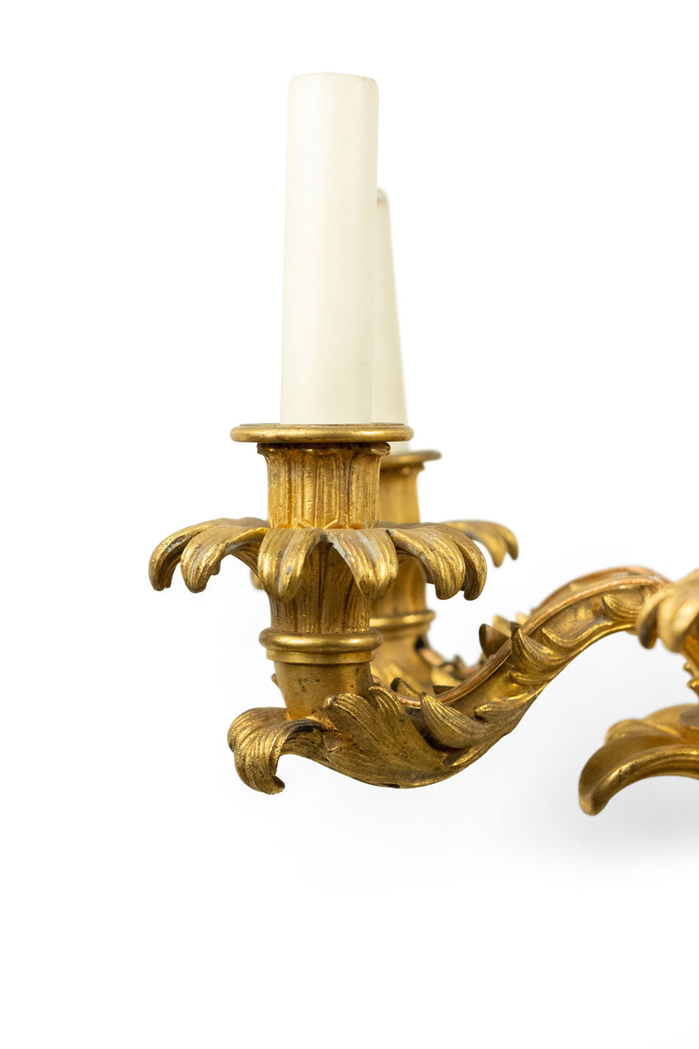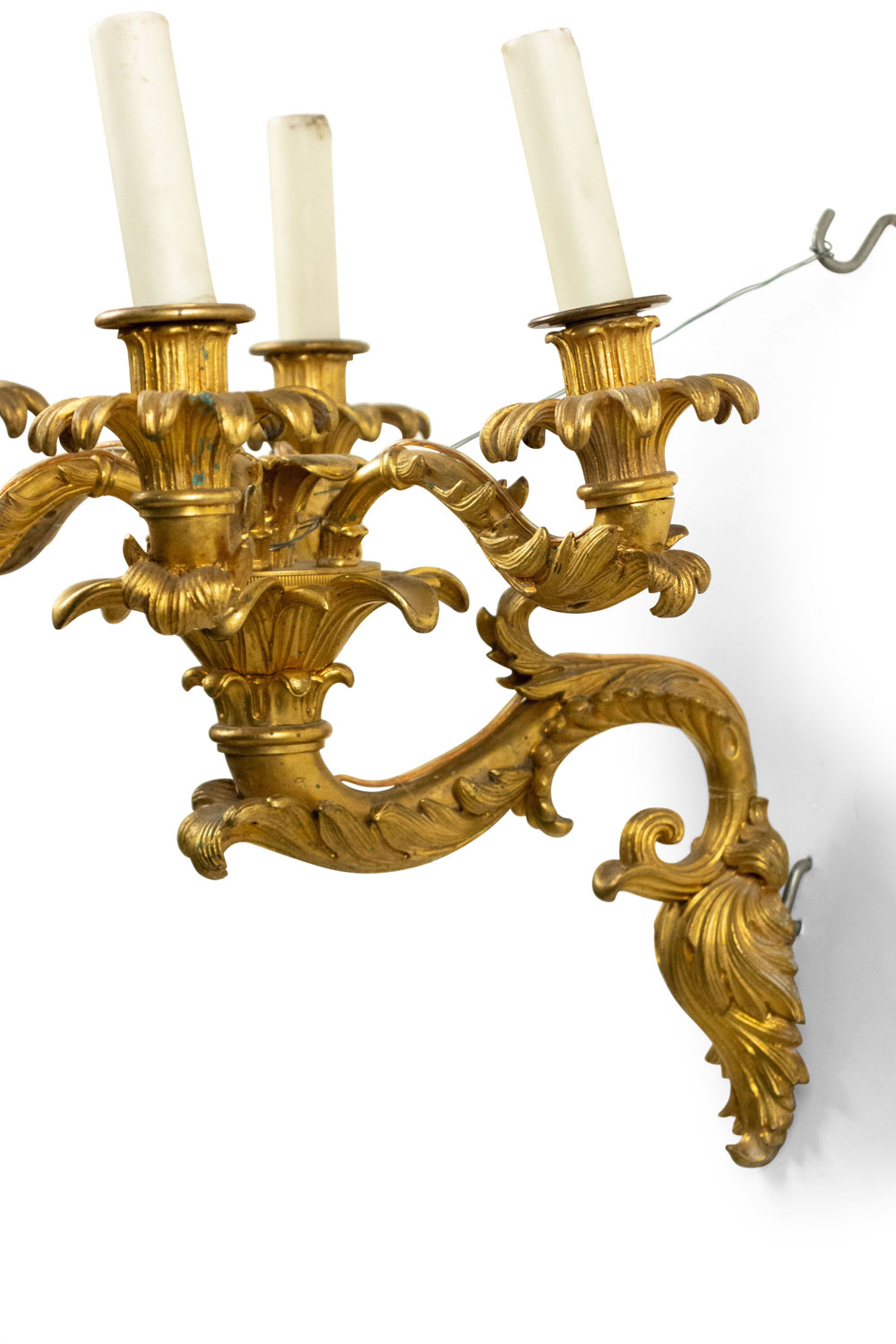 PAIR of French Charles X (circa 1835) gilt bronze wall sconces with 5 scroll arms emanating from a center light. (PRICED AS PAIR)