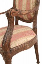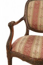 Style: French Materials & Techniques: Carved, fabric, mahogany, wood Category: Seating