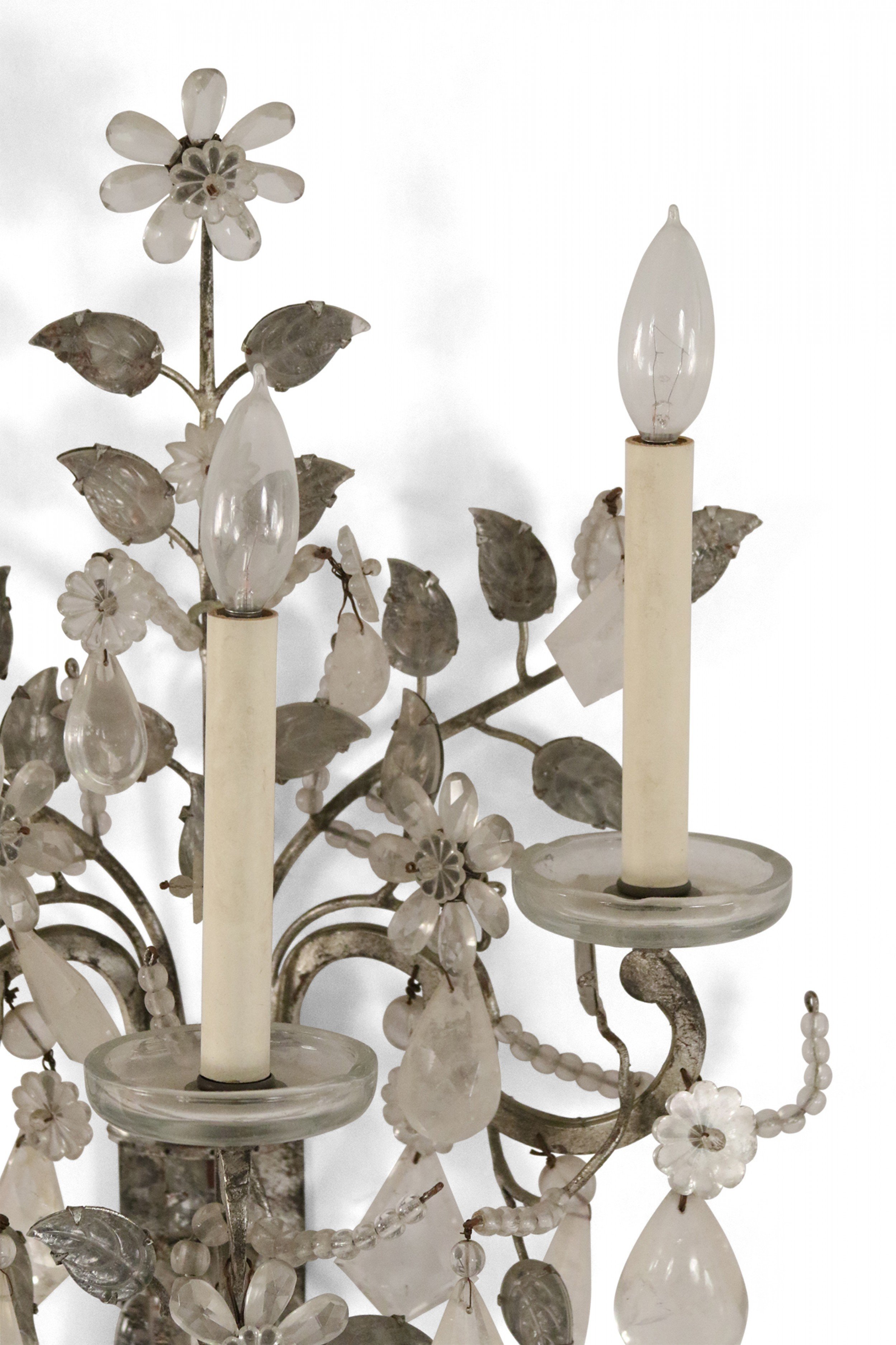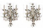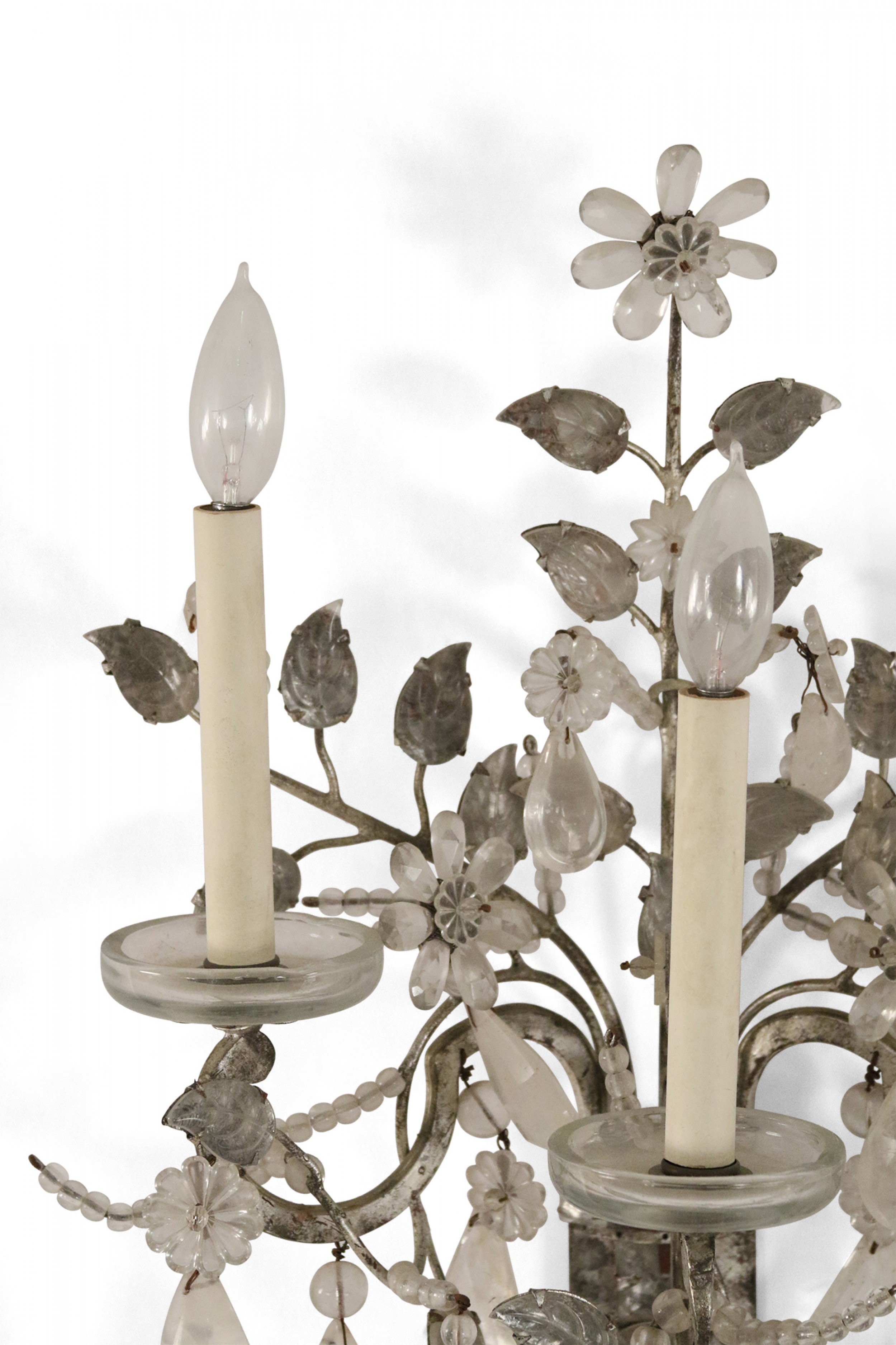 Pair of French Victorian Metal Leaf and Floral Crystal Wall Sconces
