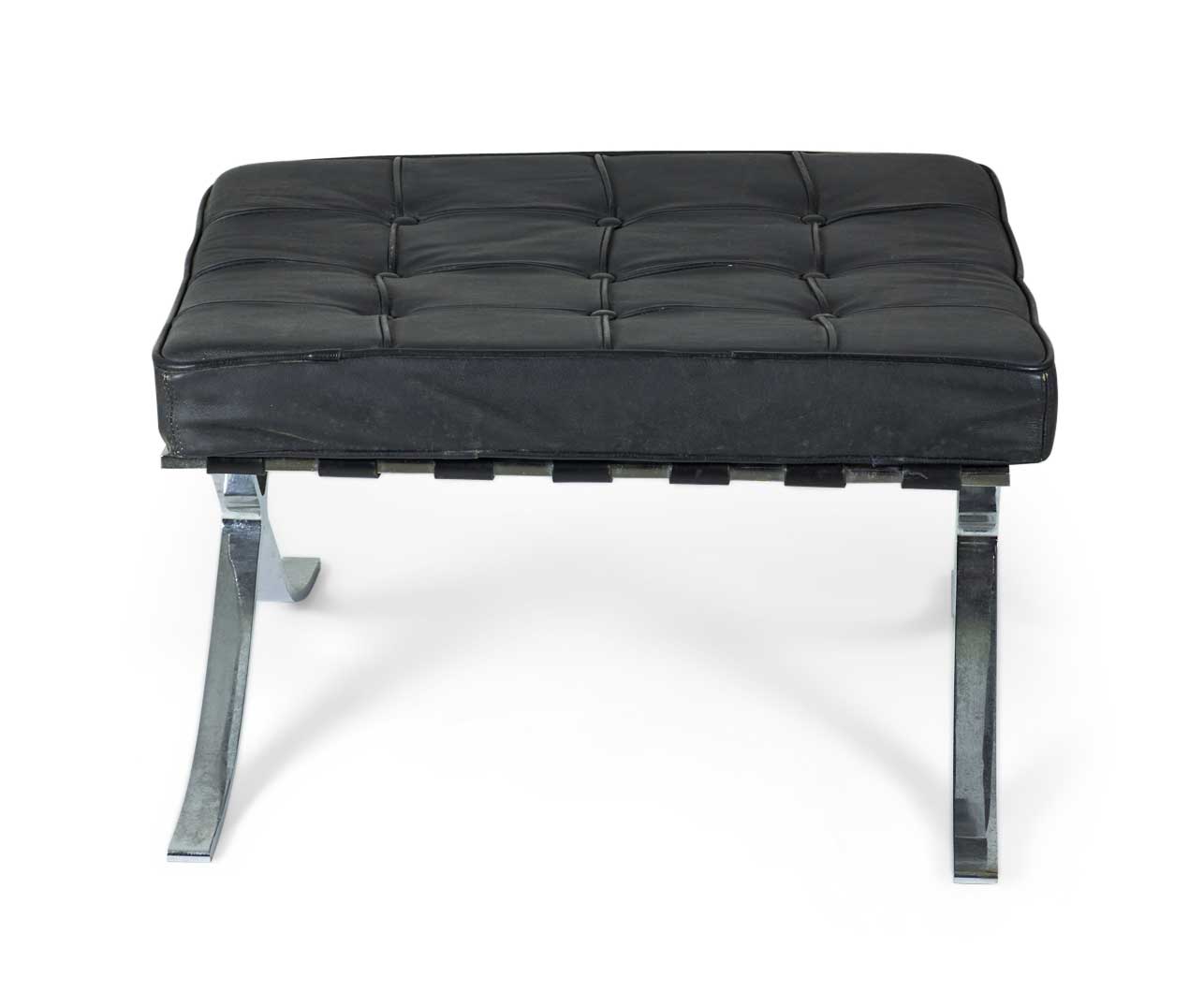 PAIR of American Mid-Century International Style (circa 1950) 'Barcelona' ottomans / benches with square tufted black leather tops supported by polished chrome bases. (PRICED AS PAIR) (manner of MIES VAN DER ROHE FOR KNOLL INTERNATIONAL).