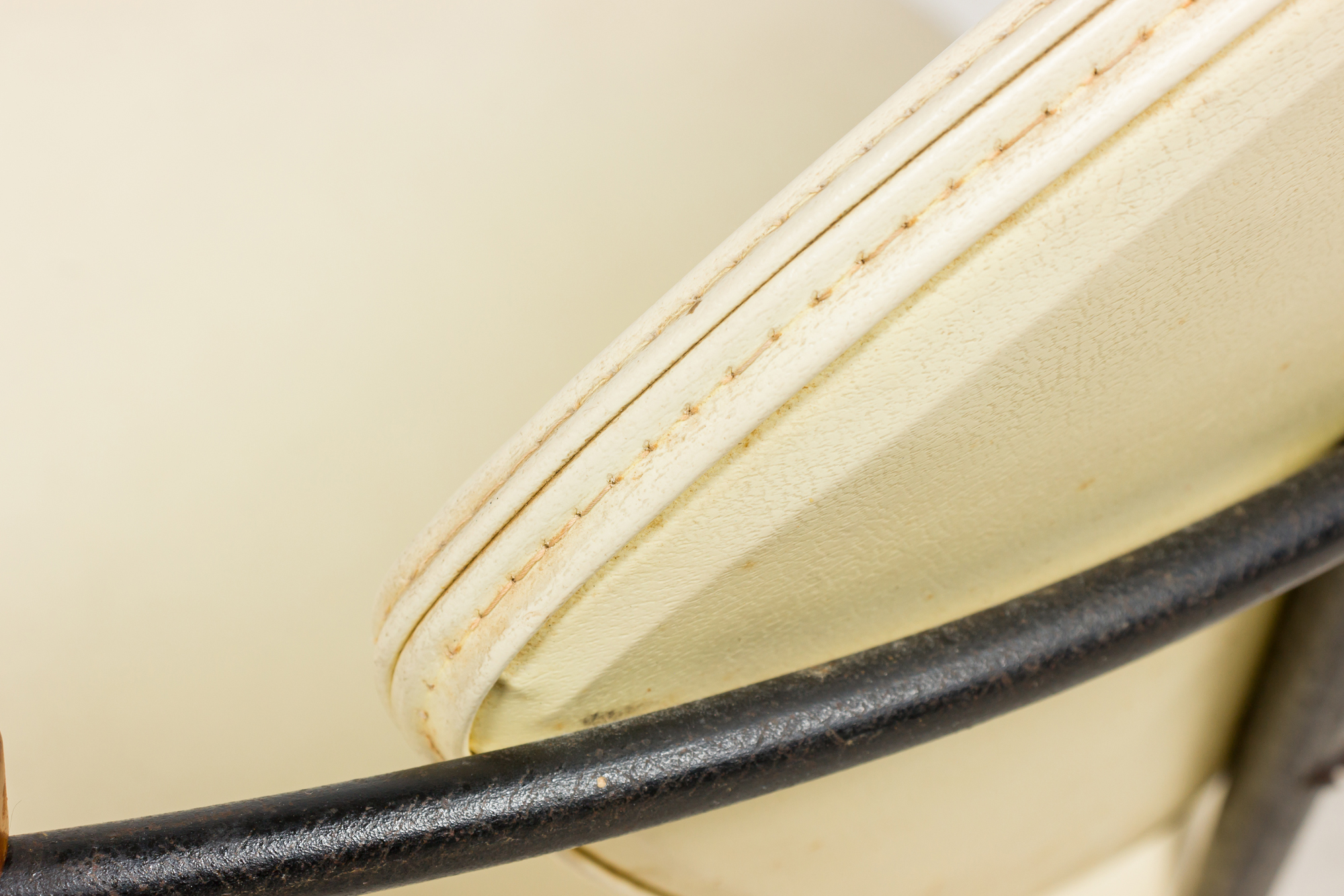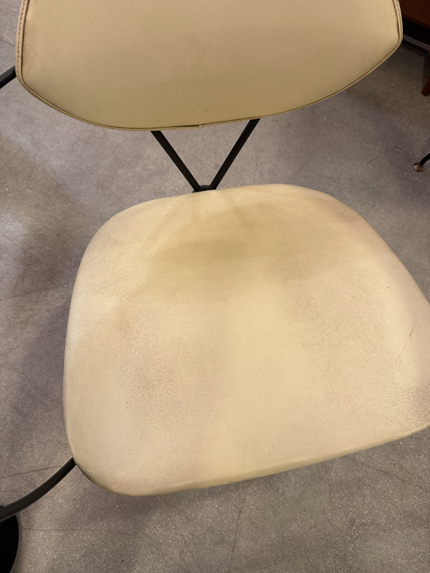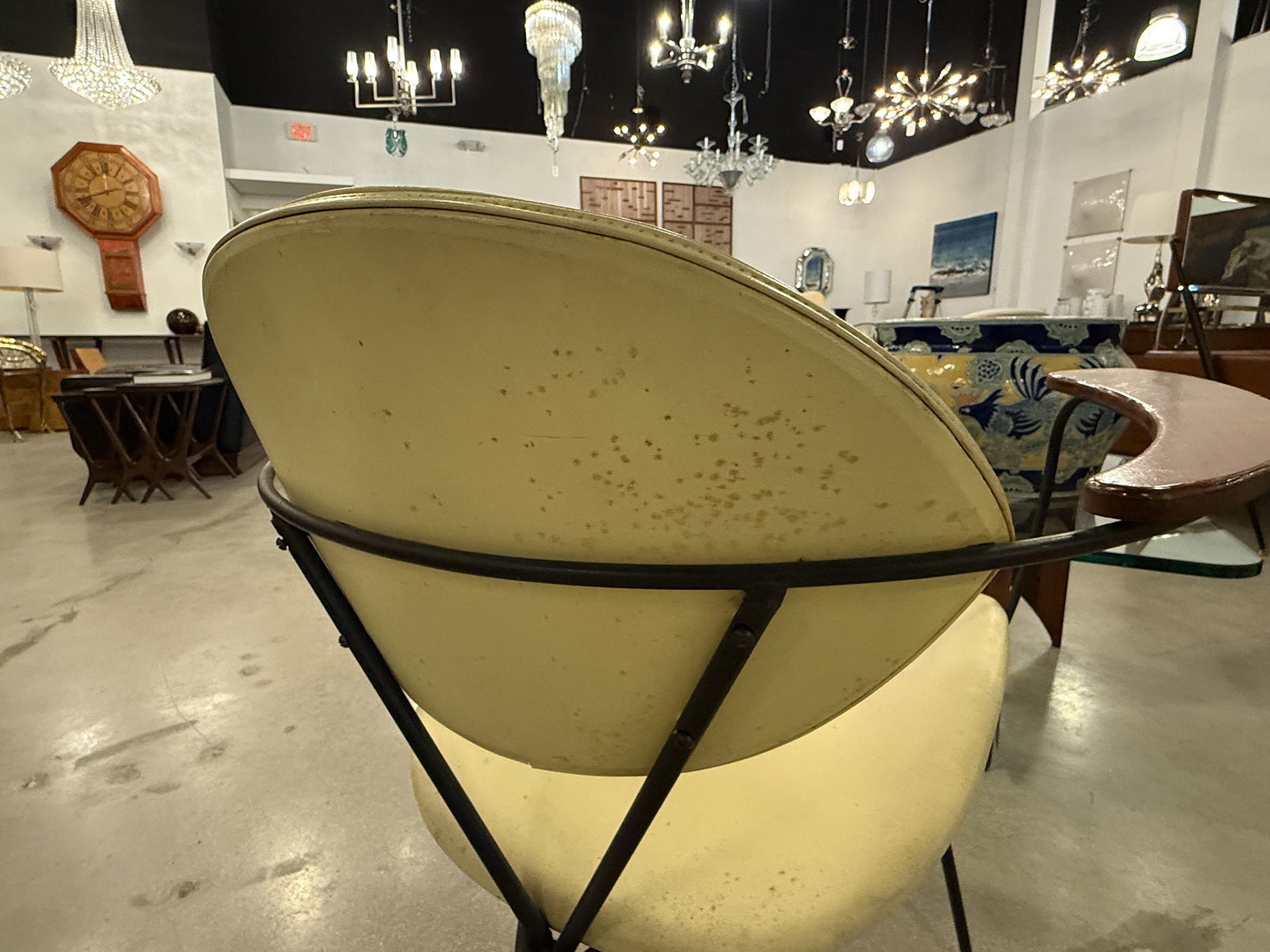 Style: Mid-Century Materials & Techniques: Metal, vinyl, wood Category: Seating Good; Wear consistent with age and use