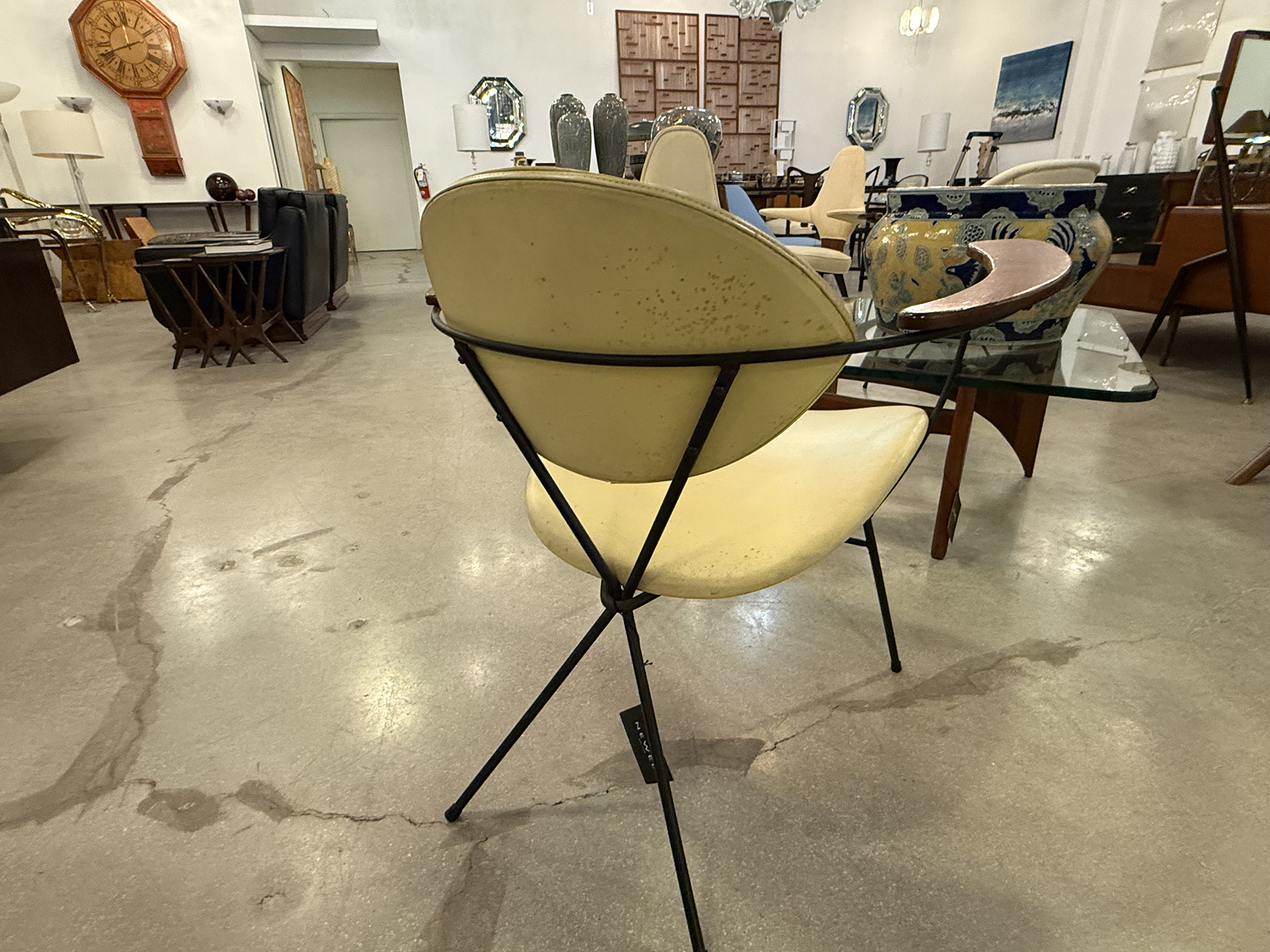 Pair of Joseph Cicchelli American Mid-Century Wrought Iron and Beige Vinyl Lounge Chairs