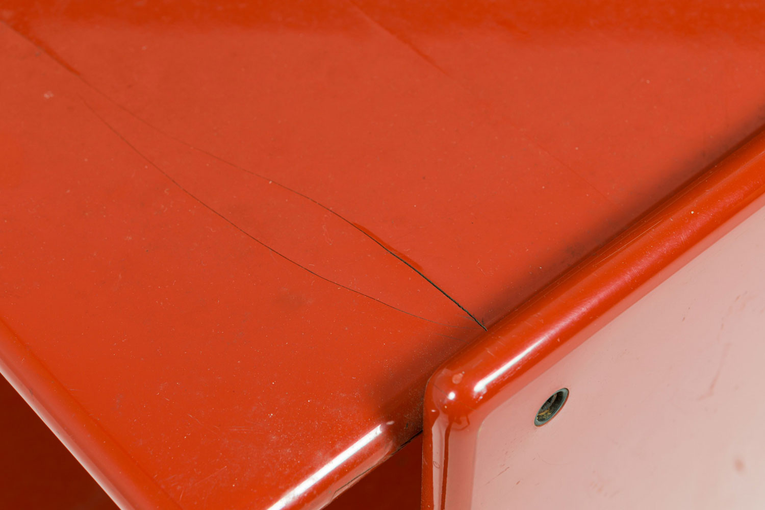 Pair of Kazuhide Takahama for Gavina SpA Rolling Cinnabar Lacquered Ultra Low Bedside Tables