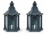 Pair of Vintage Chinese Metal and Glass Bell-Adorned Pagoda Shaped Wall Sconces