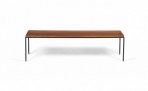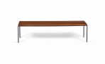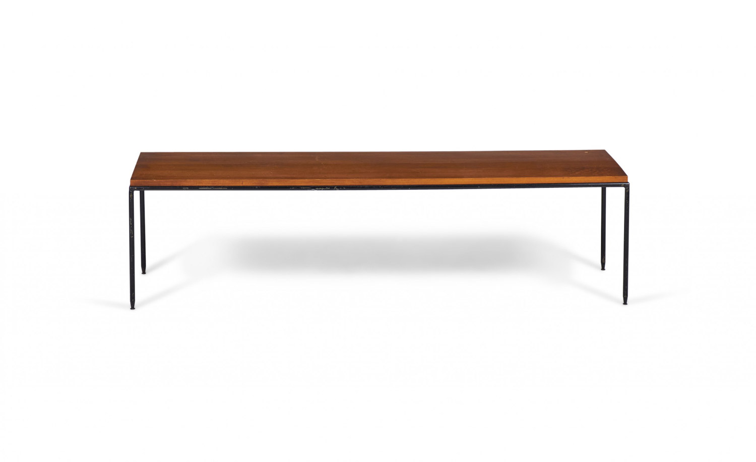 American Mid-Century rectangular coffee / cocktail table with a tobacco brown maple top resting on a wrought iron base. (PAUL MCCOBB)(Available in blond maple: DUF0084).
