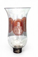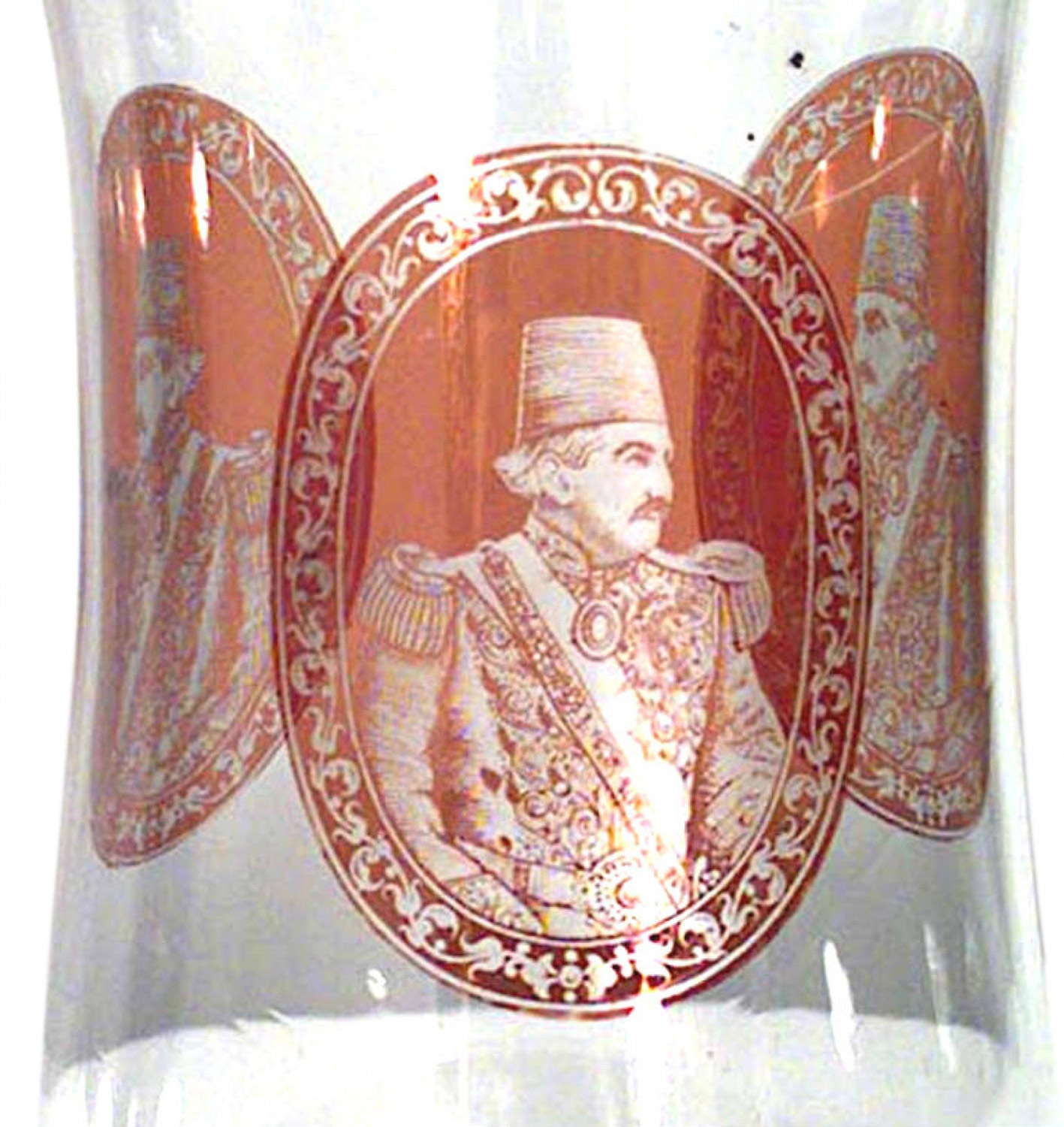 Persian Glass Hurricane Shades with Etched Shah Portraits