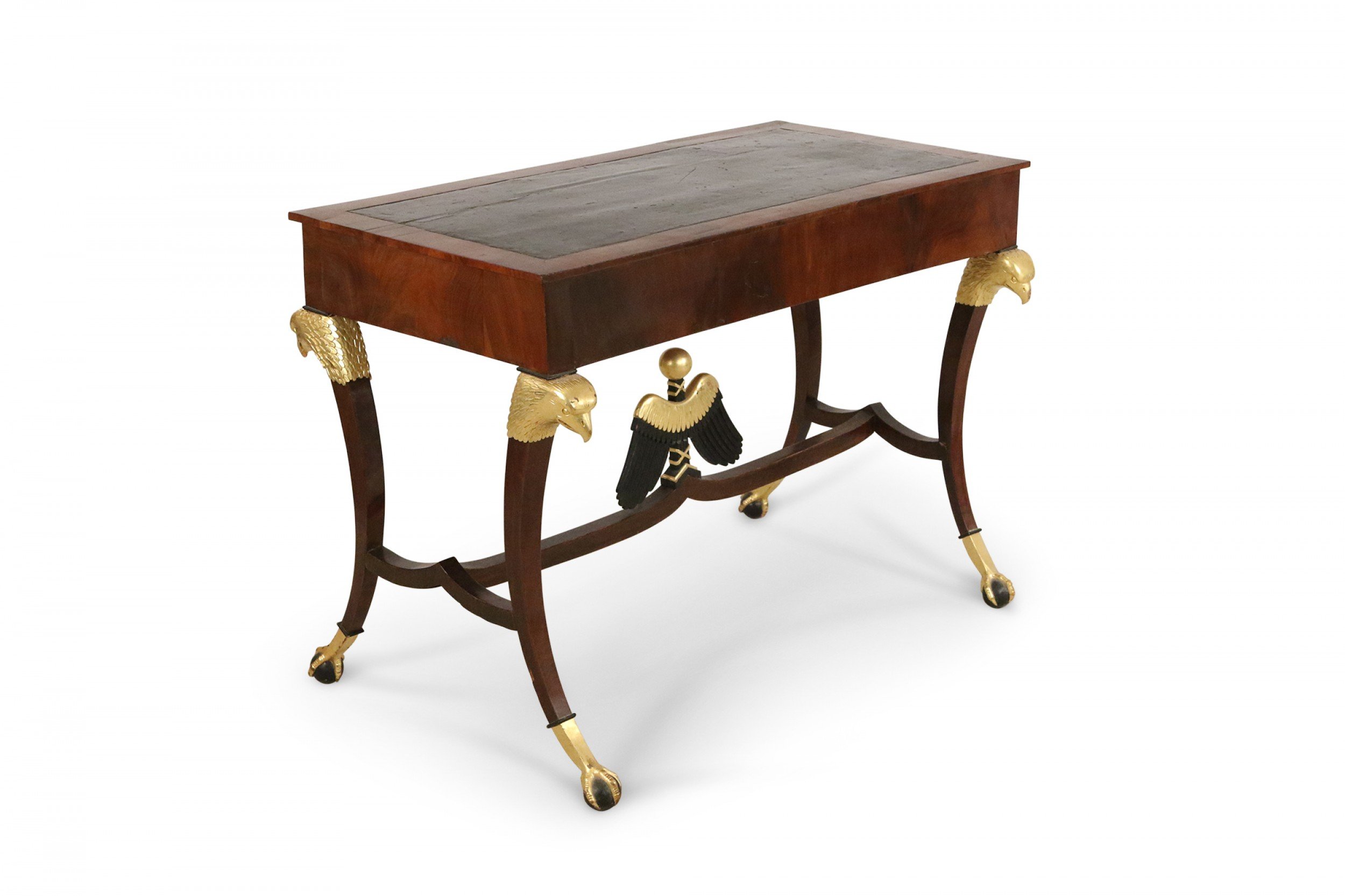 Russian Mahogany and Gilt Eagle Design Leather Top Desk