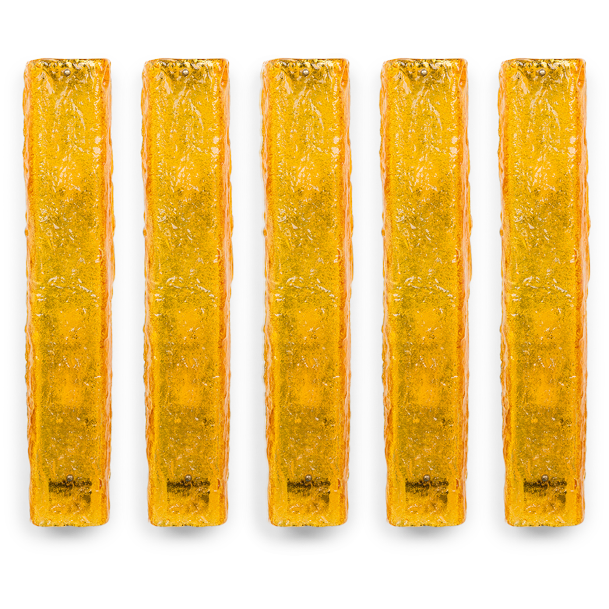 Set of 5 Mid-Century Rectangular Textured Amber Glass Wall Sconces