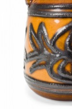 Strehla Keramik East German Mid-Century Raised Green Design and Brown Glazed Ceramic Jug