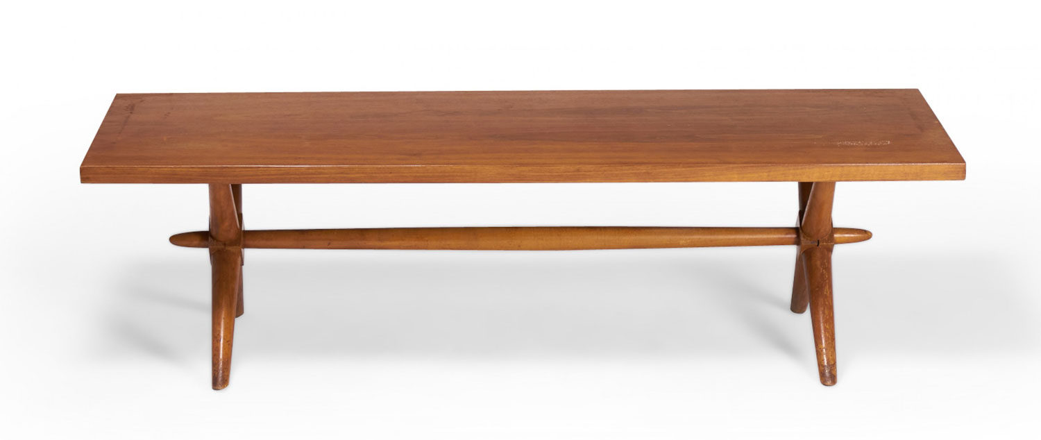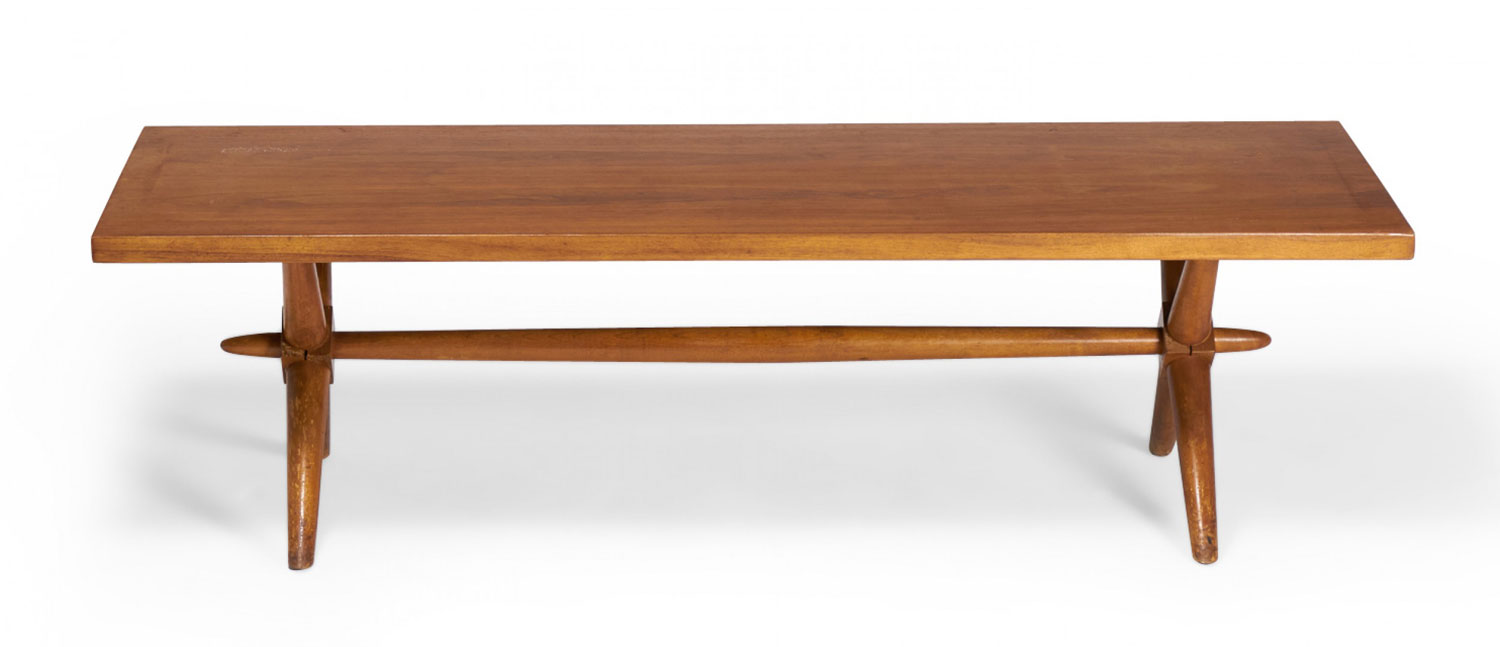 T.H. Robsjohn-Gibbings American Mid-Century Walnut Trestle-Base Coffee / Cocktail Table