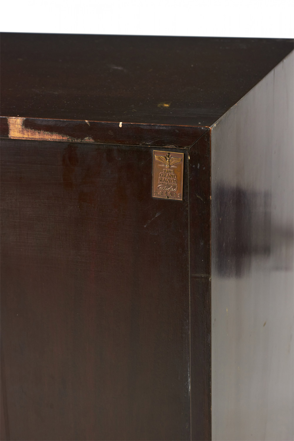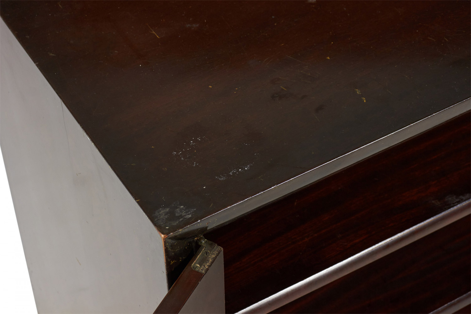 Style: Mid-Century Materials & Techniques: Brass, mahogany, metal, wood Category: Cabinets & Case Goods Good; Wear consistent with age and use