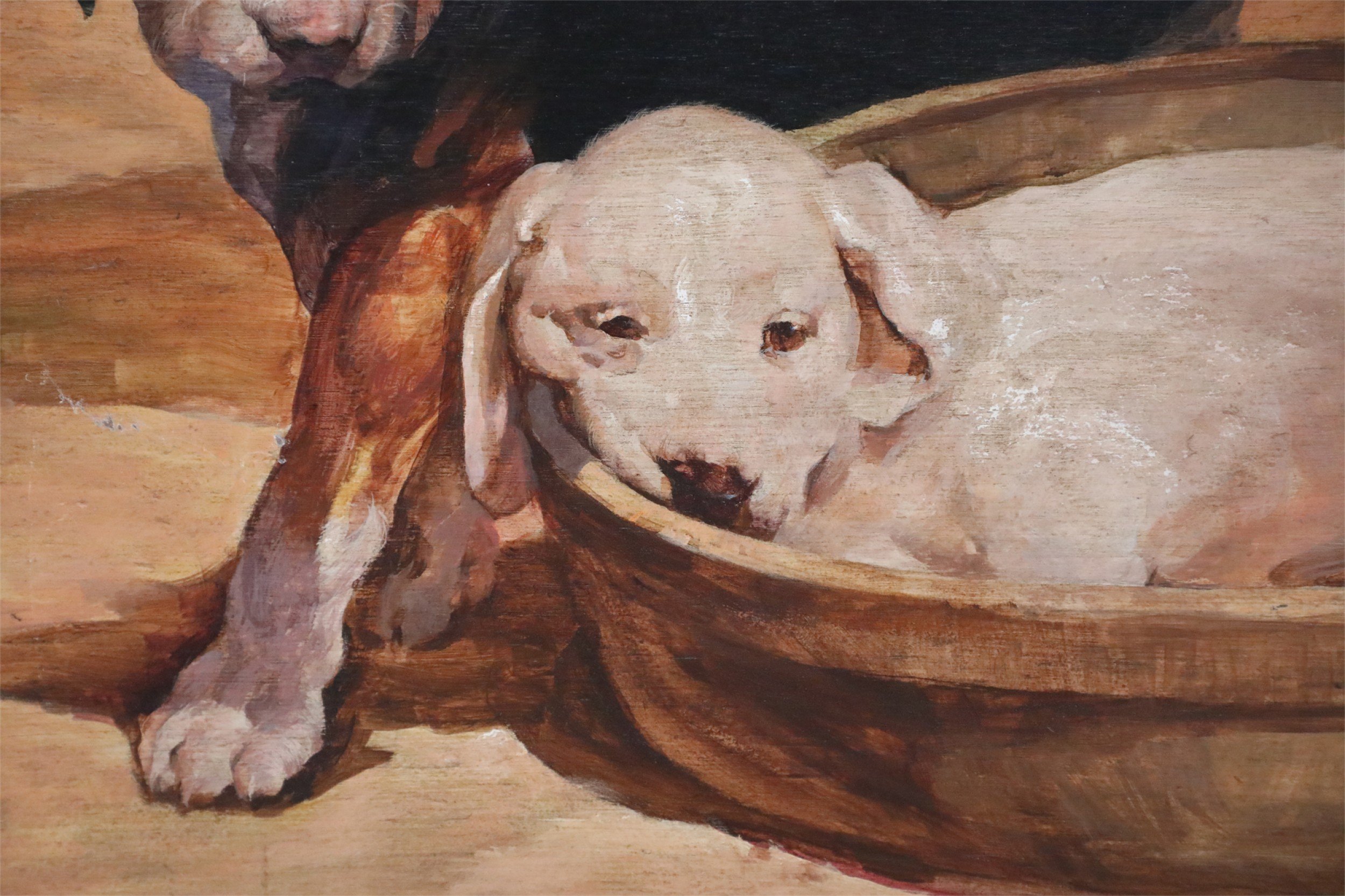 Two Puppies and Basket Painting on Wood