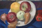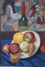 Vintage Bowl of Fruit and Street Scene Painting on Canvas