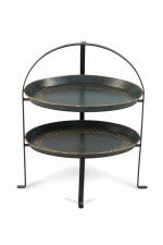 Style: Asian Materials & Techniques: Metal, tole Category: Tables Good; Wear consistent with age and use