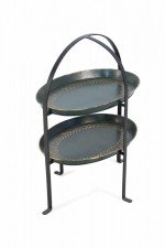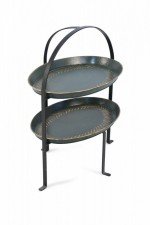 Vintage Chinese Green Two-Tiered Tole Oval Server