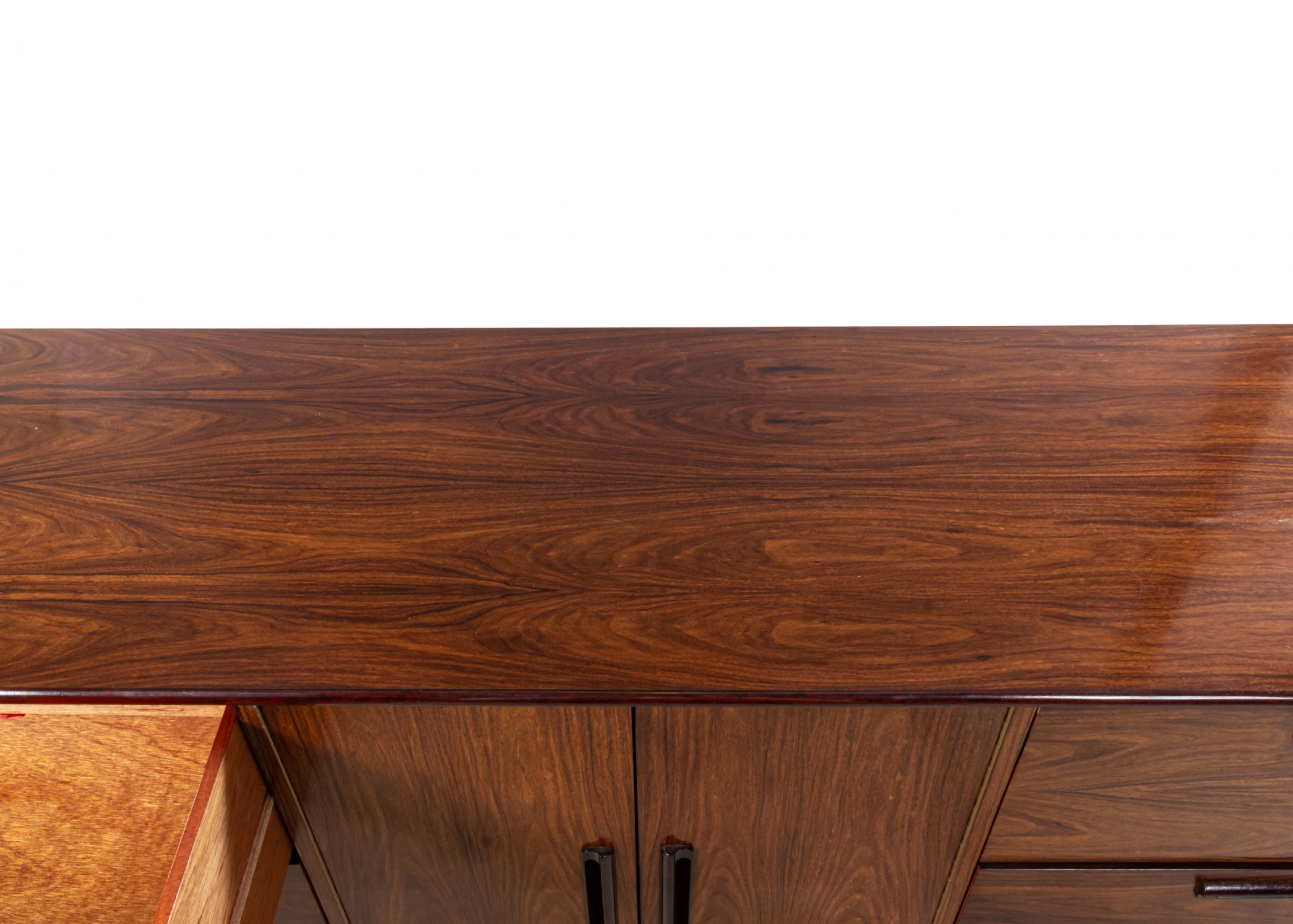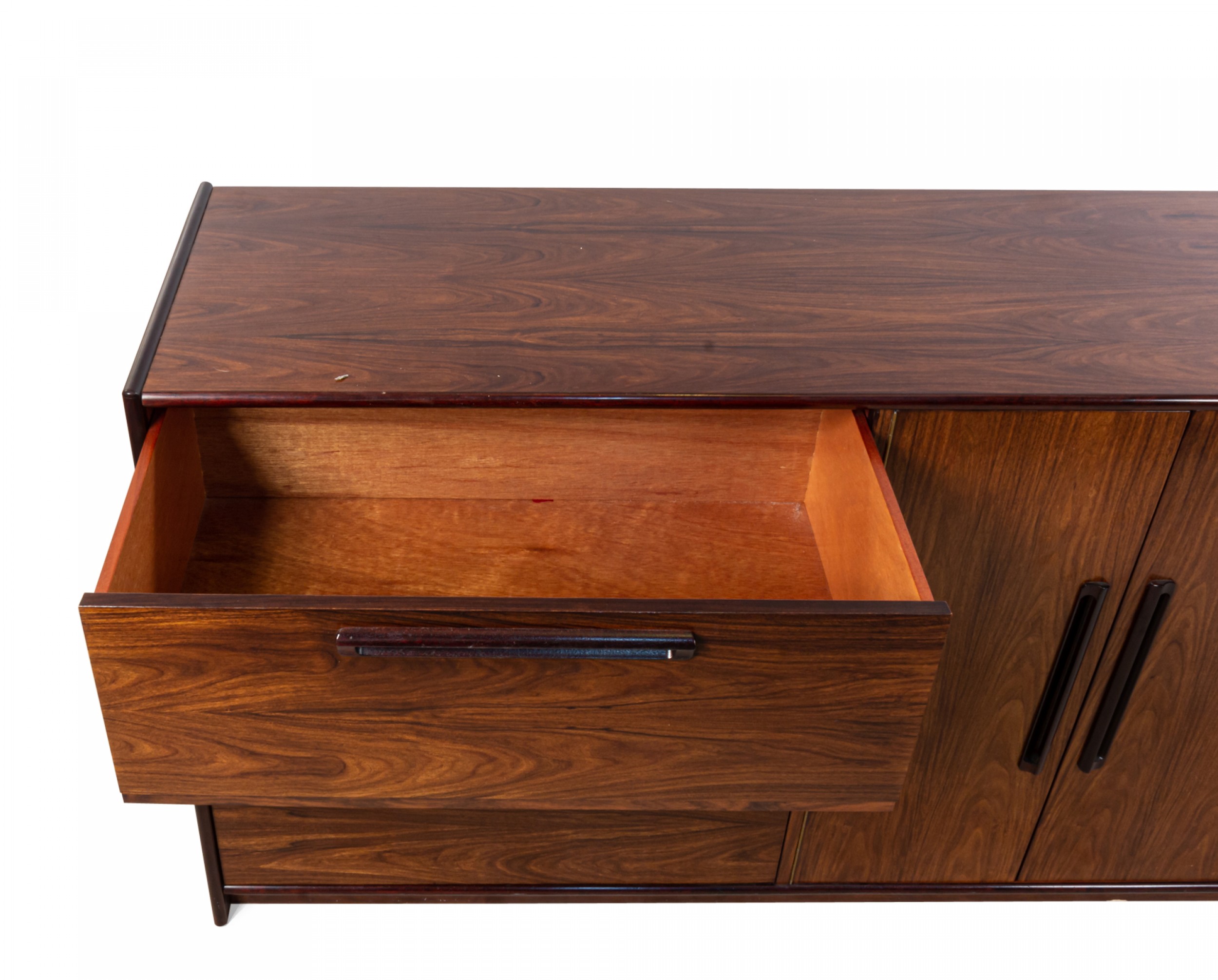 Style: Mid-Century Materials & Techniques: Rosewood, wood Category: Cabinets & Case Goods, Bedroom Condition: Minor wear to finish, fading on top