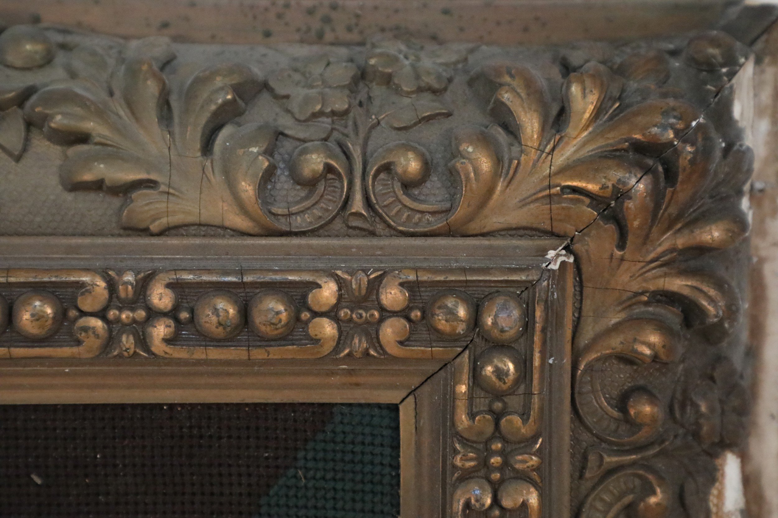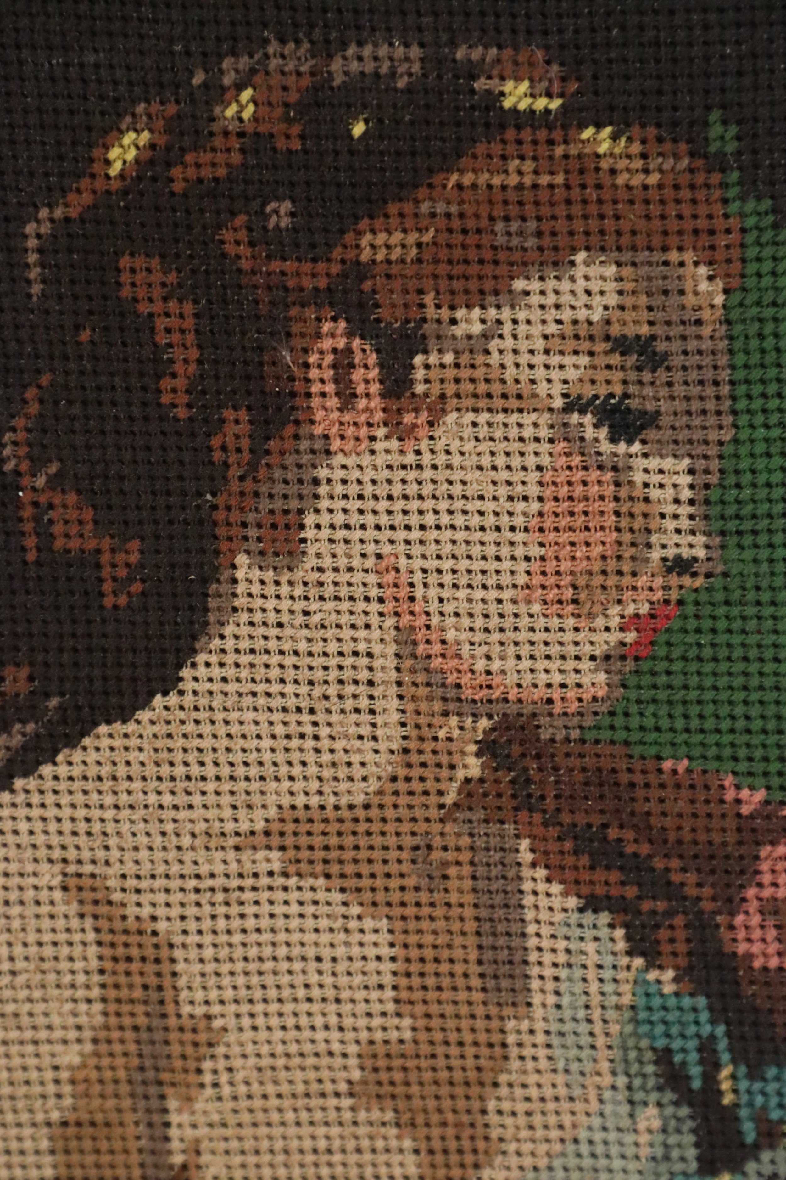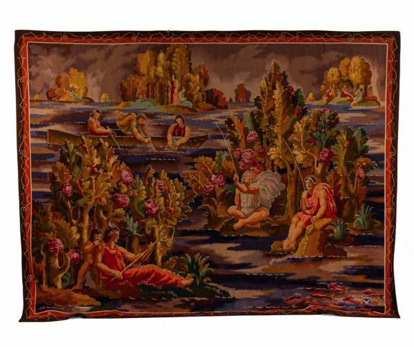 Style: Mid-Century Materials & Techniques: Textile, wood Category: Cleared Art, Rugs/Textile Condition: Losses to frame finish on right and left sides.