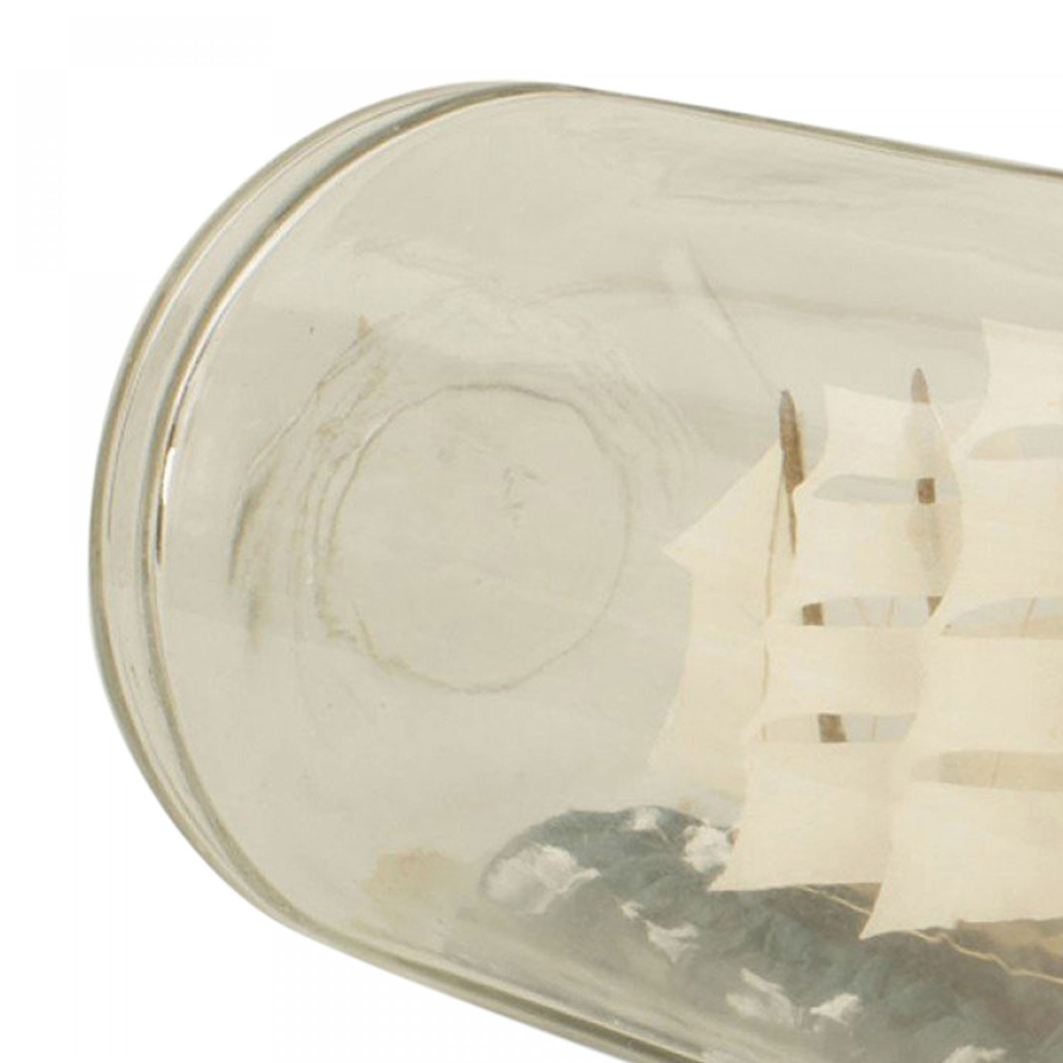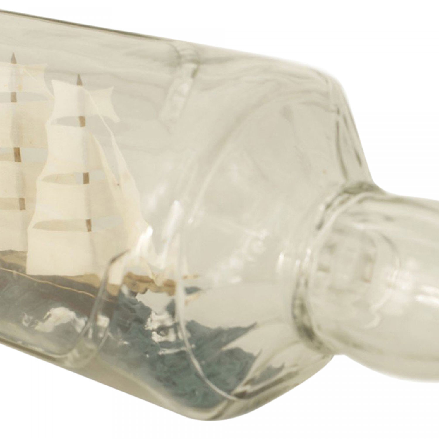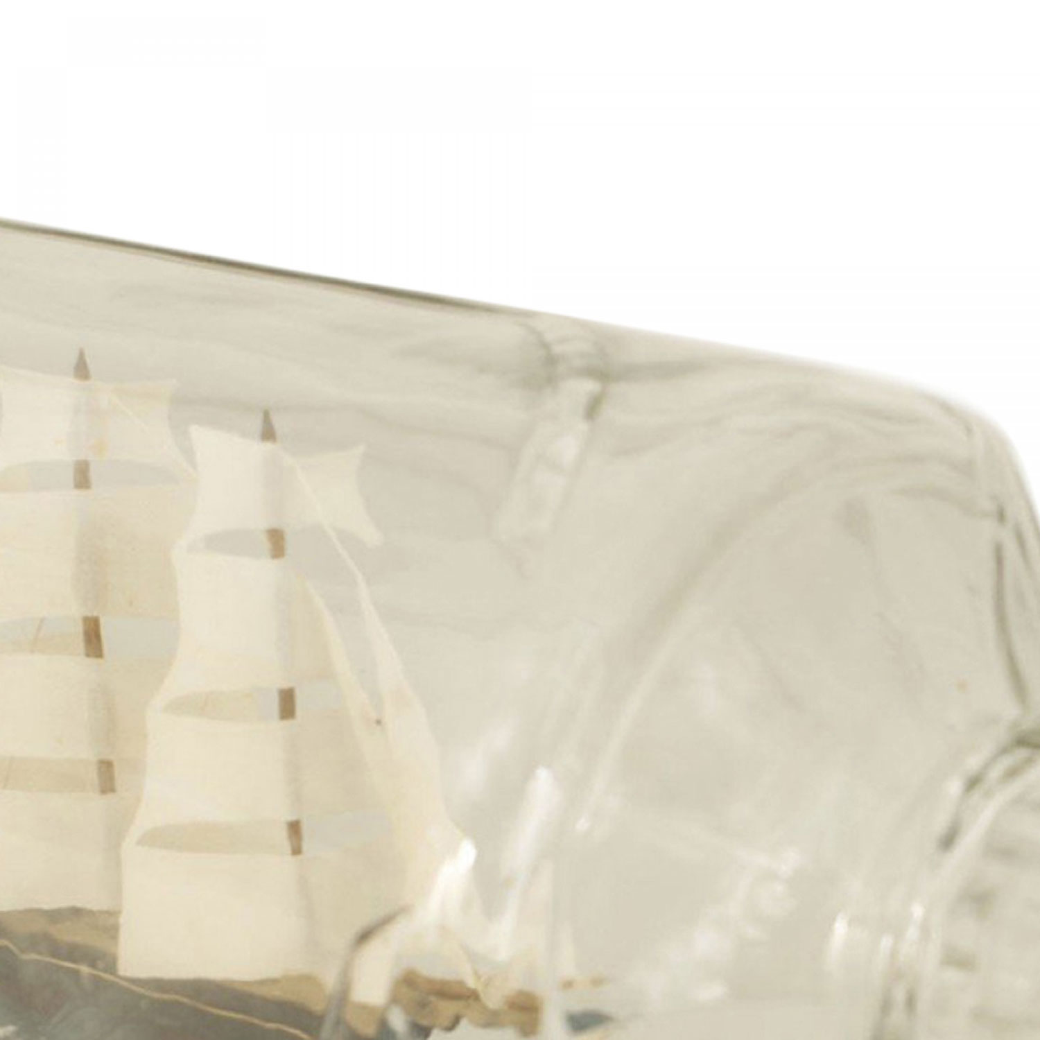 Sailing ship with 4 masts in a ½ round and 3 sided glass bottle