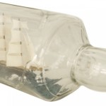 American/English (20th Cent) sailing ship with 4 masts in a ½ round and 3 sided glass bottle.