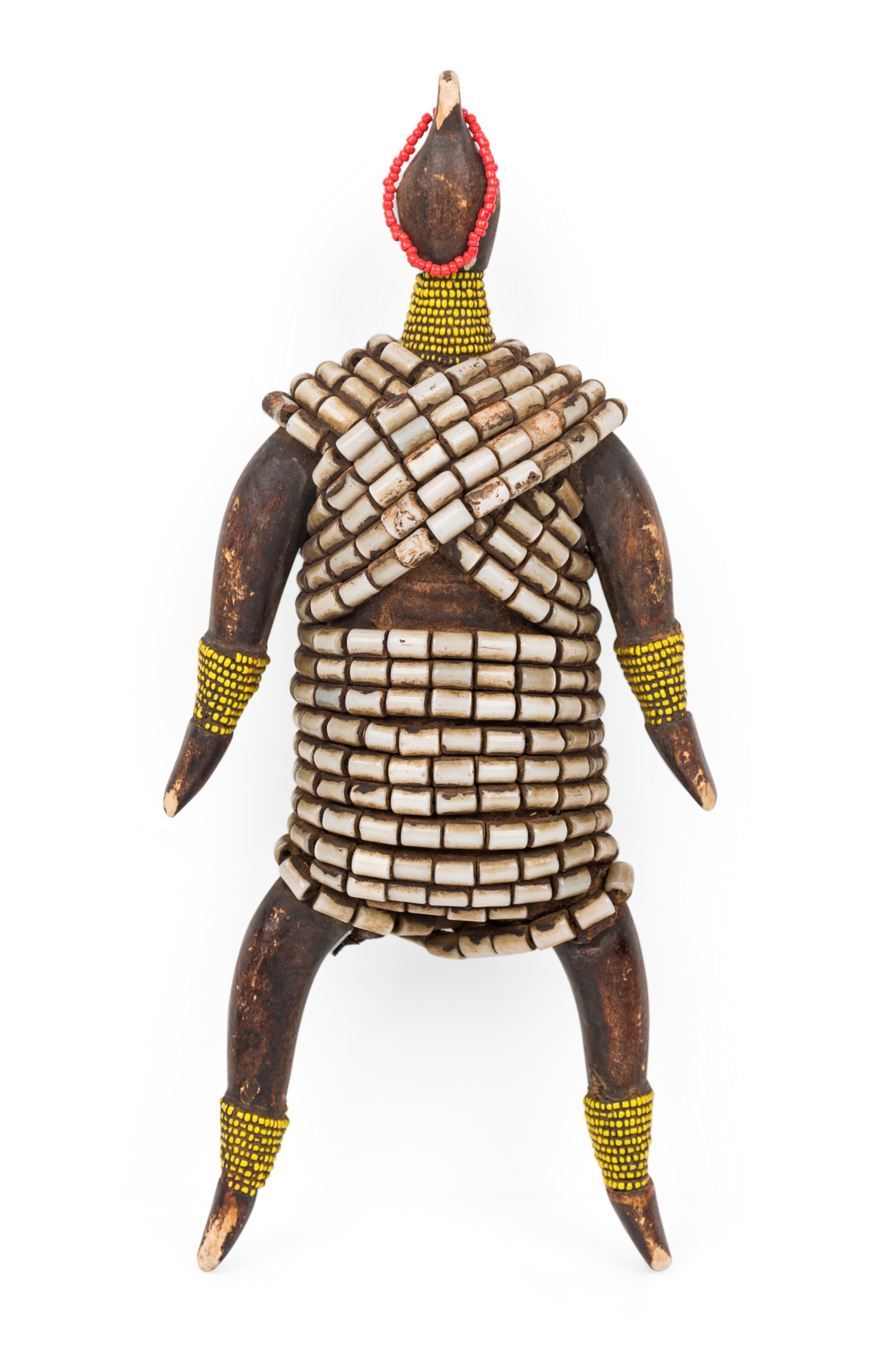 Style: Misc. Style Materials & Techniques: Beaded, carved, wood Category: Cleared Sculpture Condition: Wear to finish with losses Good; Minor losses