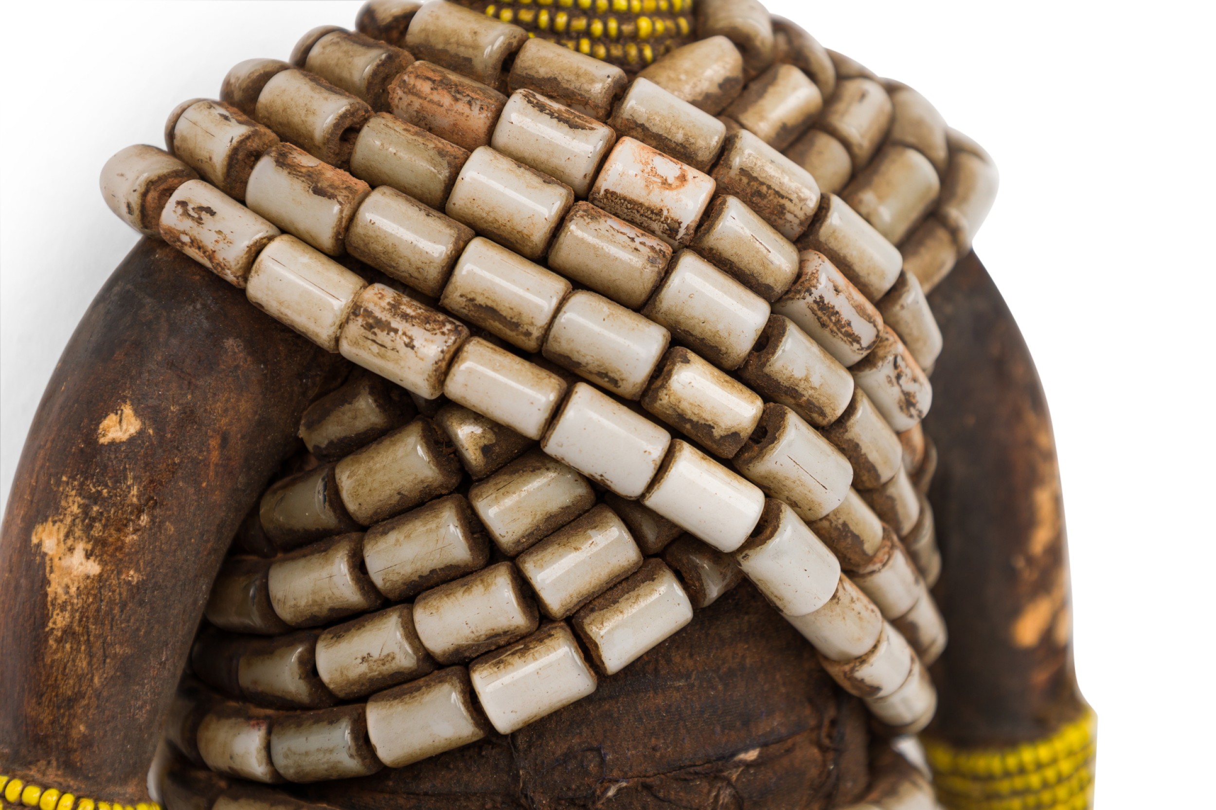 African Cameroon 20th Century Carved Wood & Beaded Namur Doll Female Fertility Figure