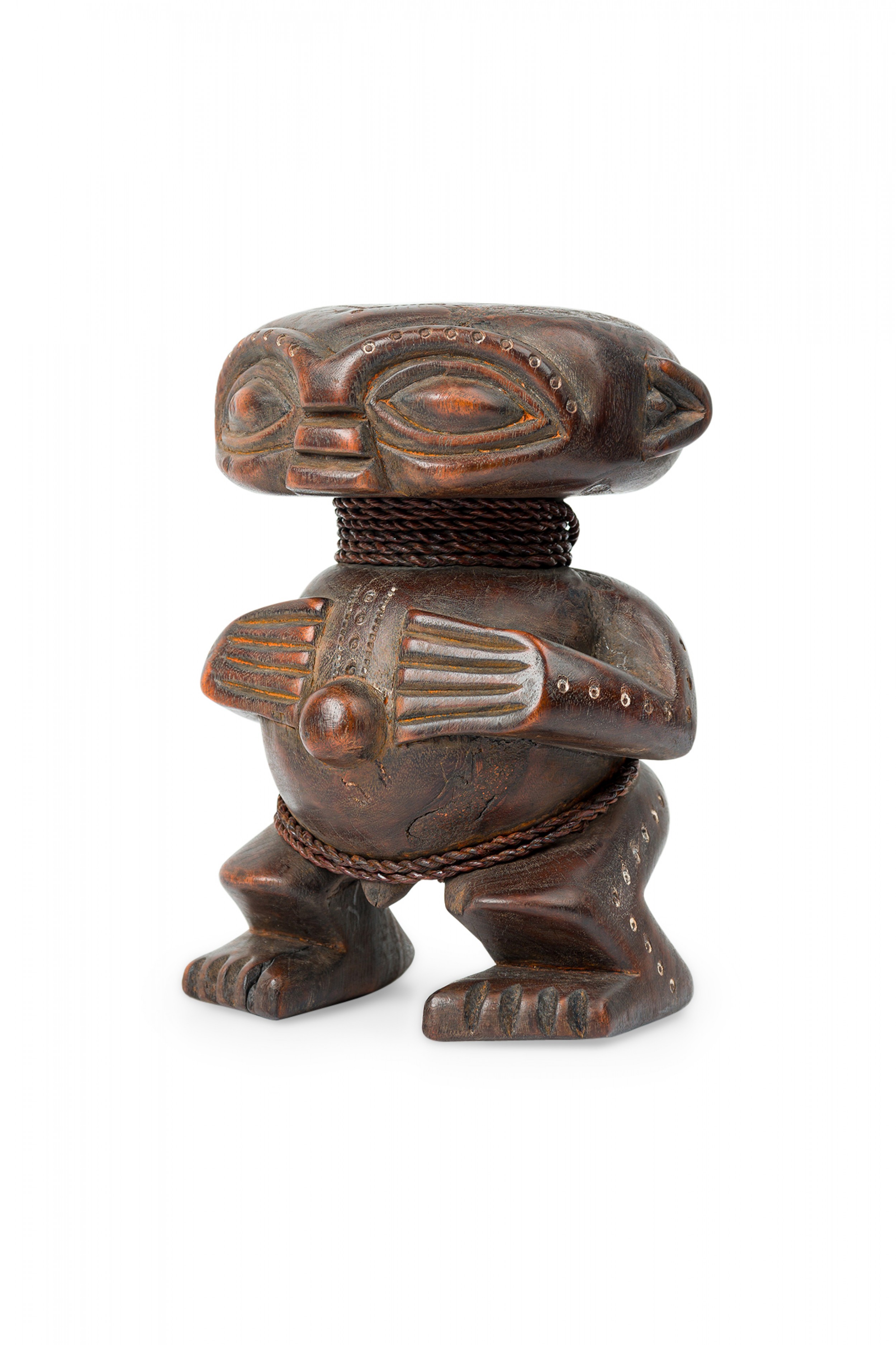 African Cameroon Contemporary Carved Wood Pygmy Squatting Figure