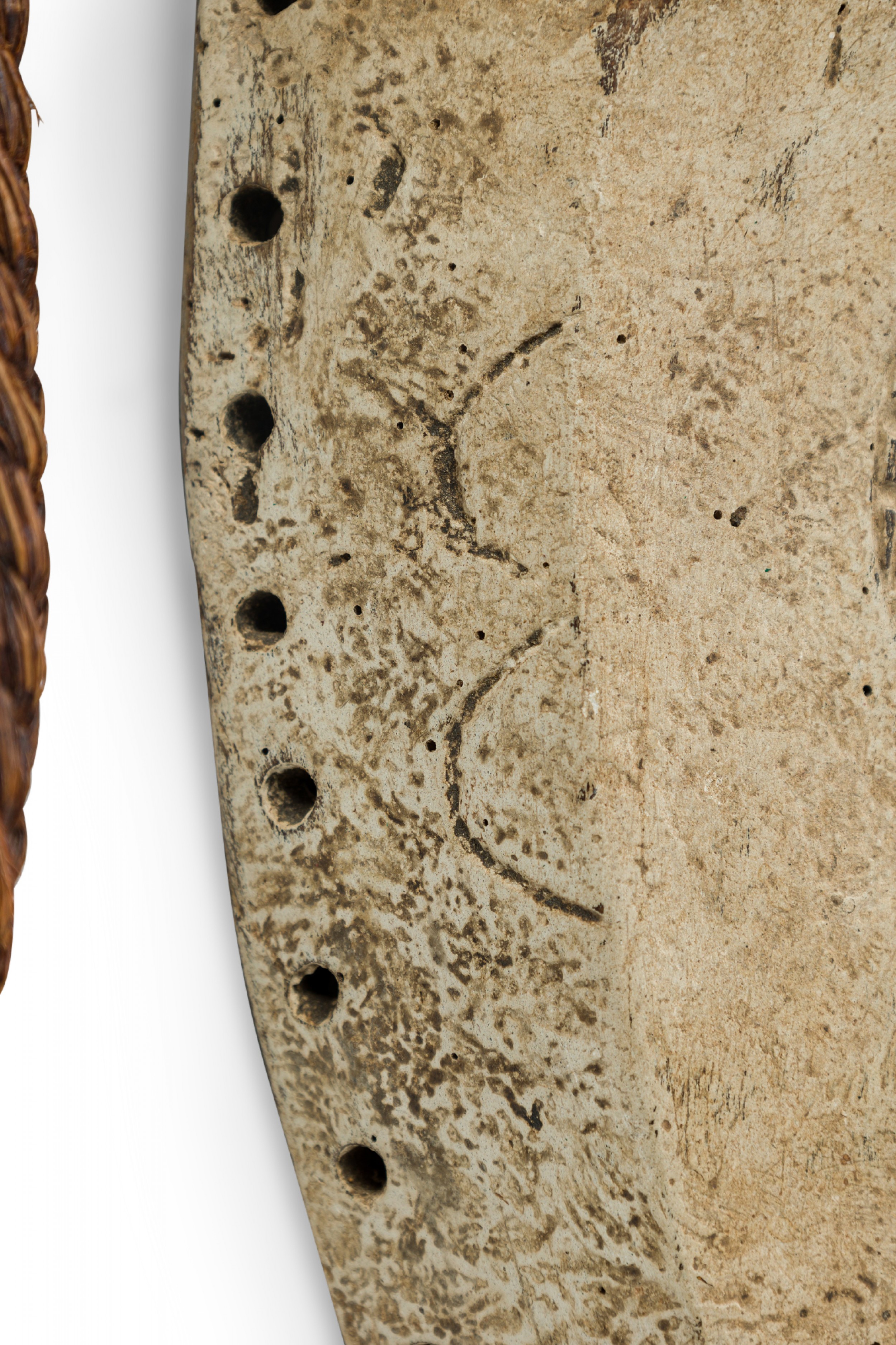 Style: Misc. Style Materials & Techniques: Bone, carved, incised, inlaid, inlay, painted, wood Category: Cleared Art Condition: Wear to finish with losses Good; Minor losses