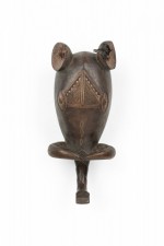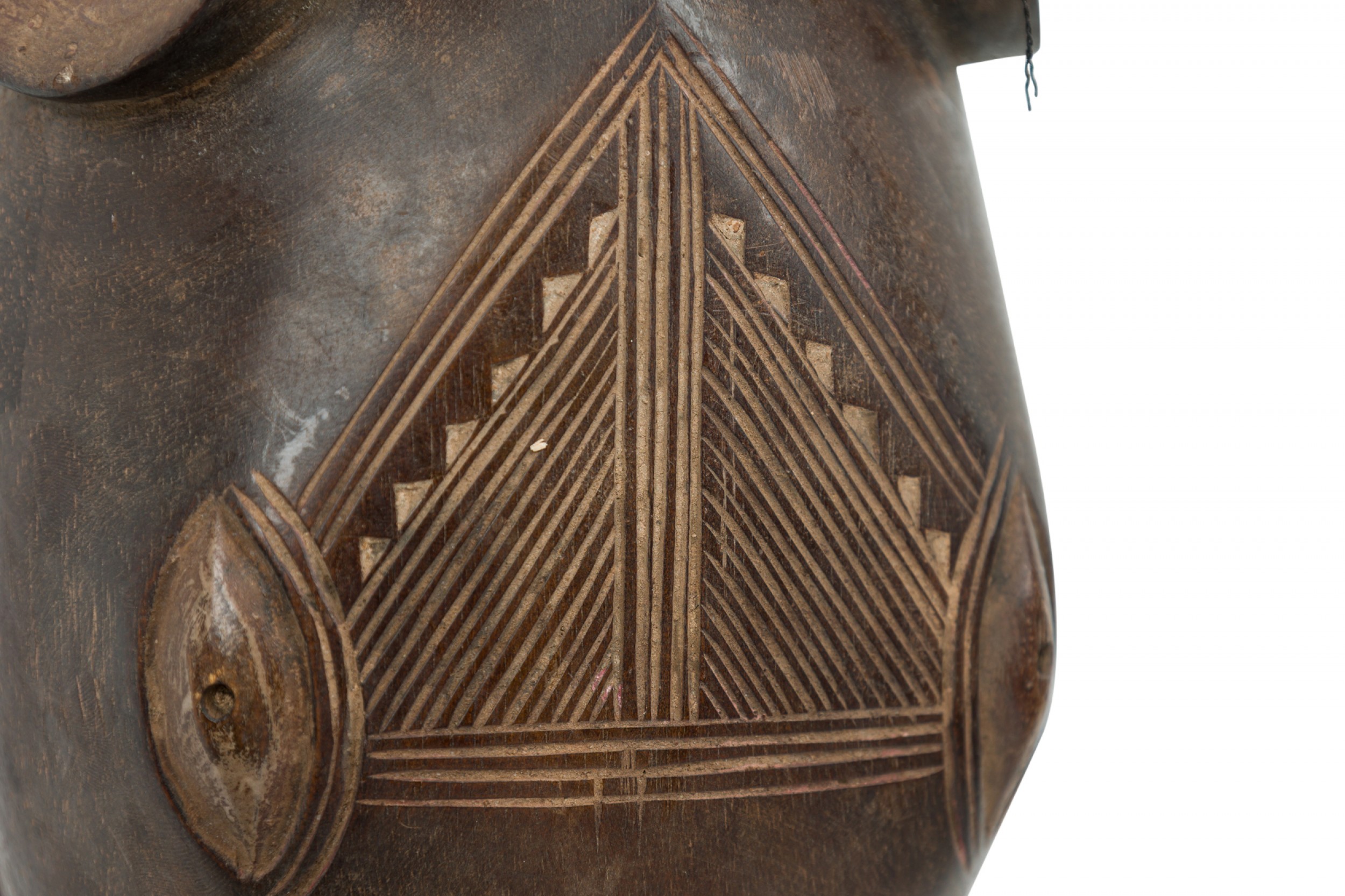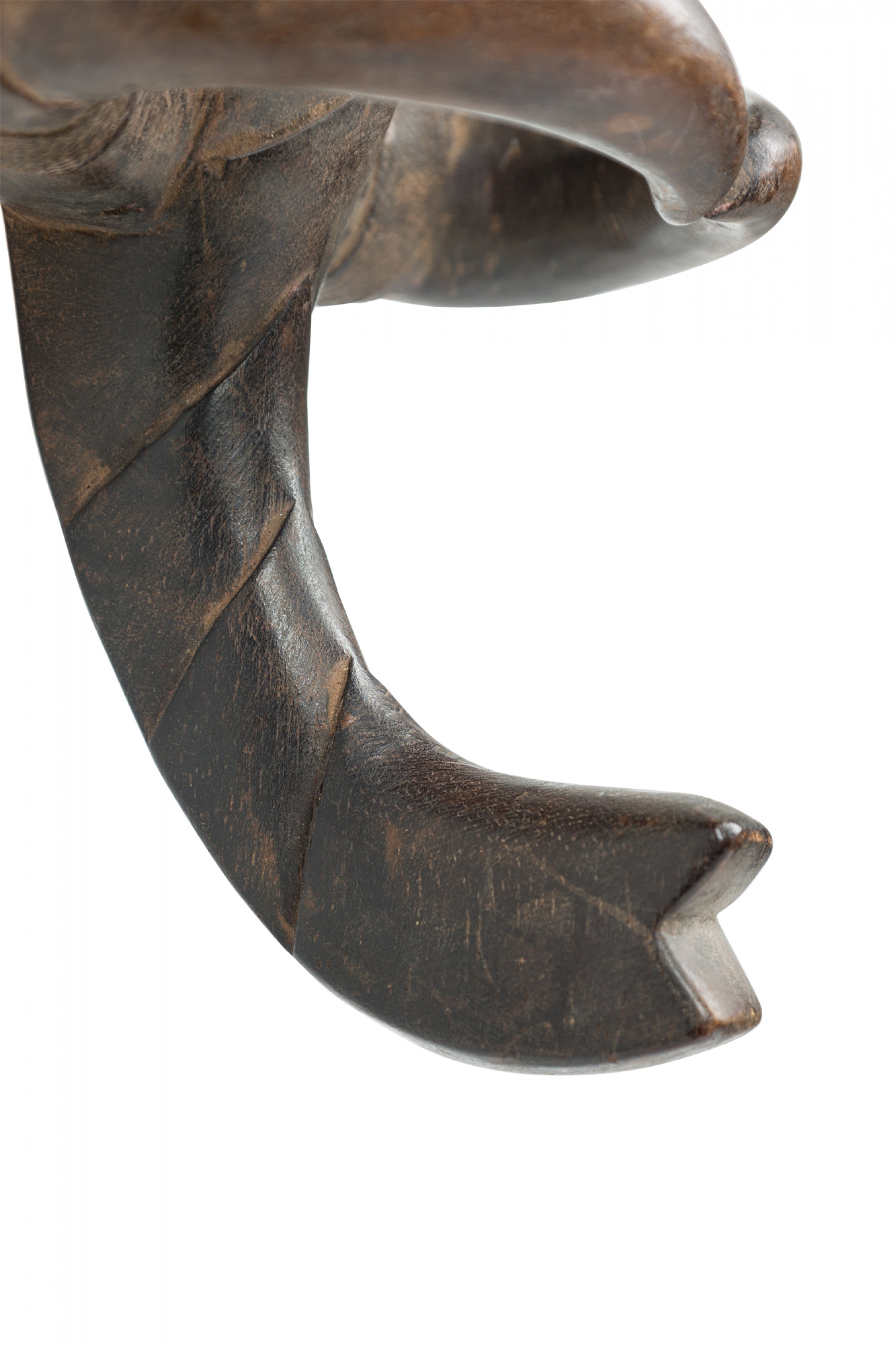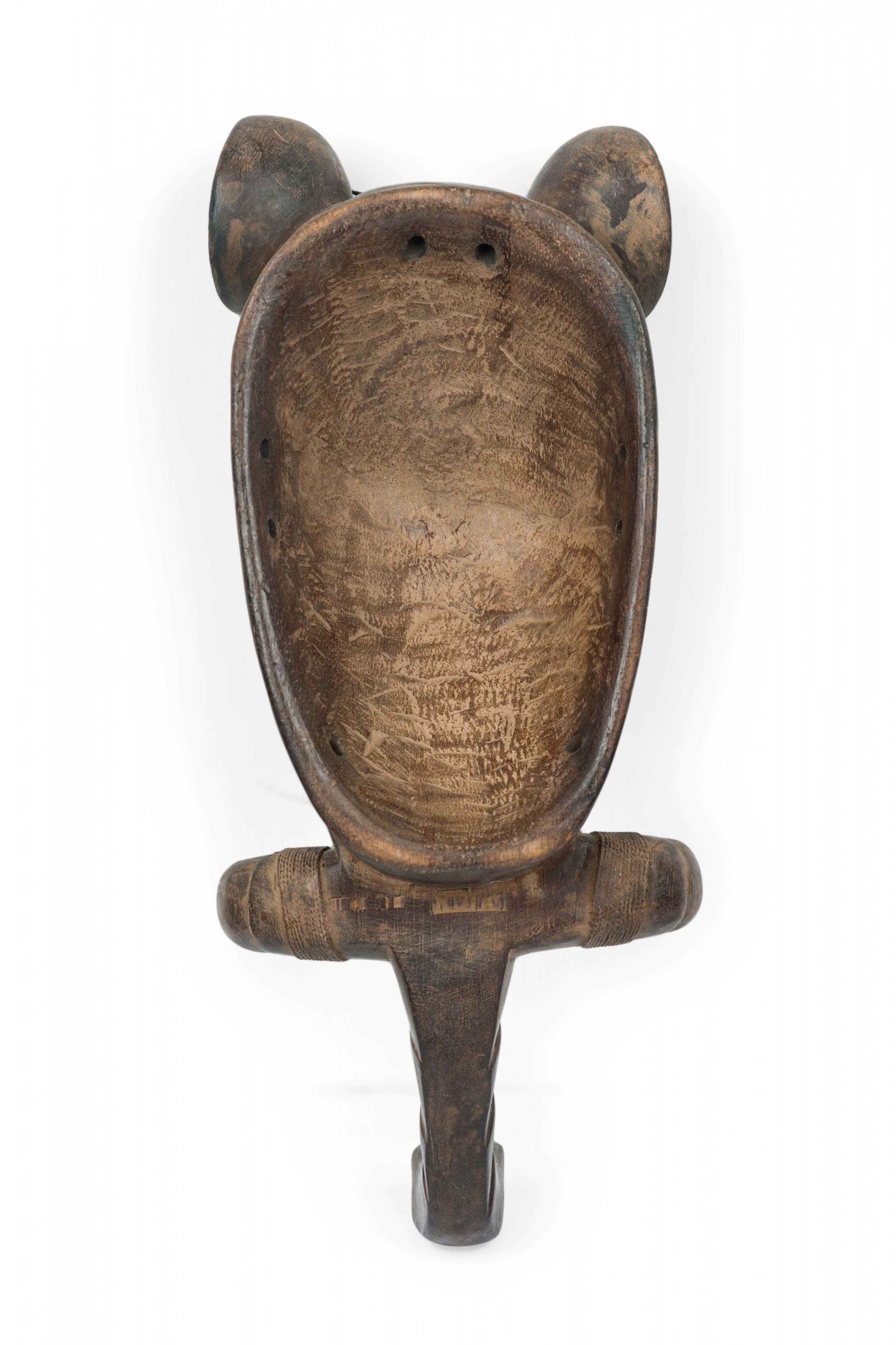 African Ivory Coast 20th Century Carved Wood Baule Goli Elephant Face Mask with Horns