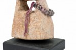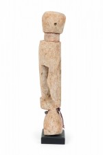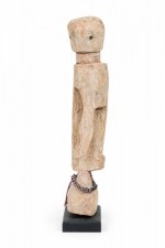 African Togo 20th Century carved wood Legba Aja (goddess of healing, herbs & knowledge) figure in a minimalist style with a string of beads wrapped around her left leg, mounted on a rectangular stand. (Literature: P. 275, African Vodun: Art, Psychology and Power by Suzanne Preston Blier).