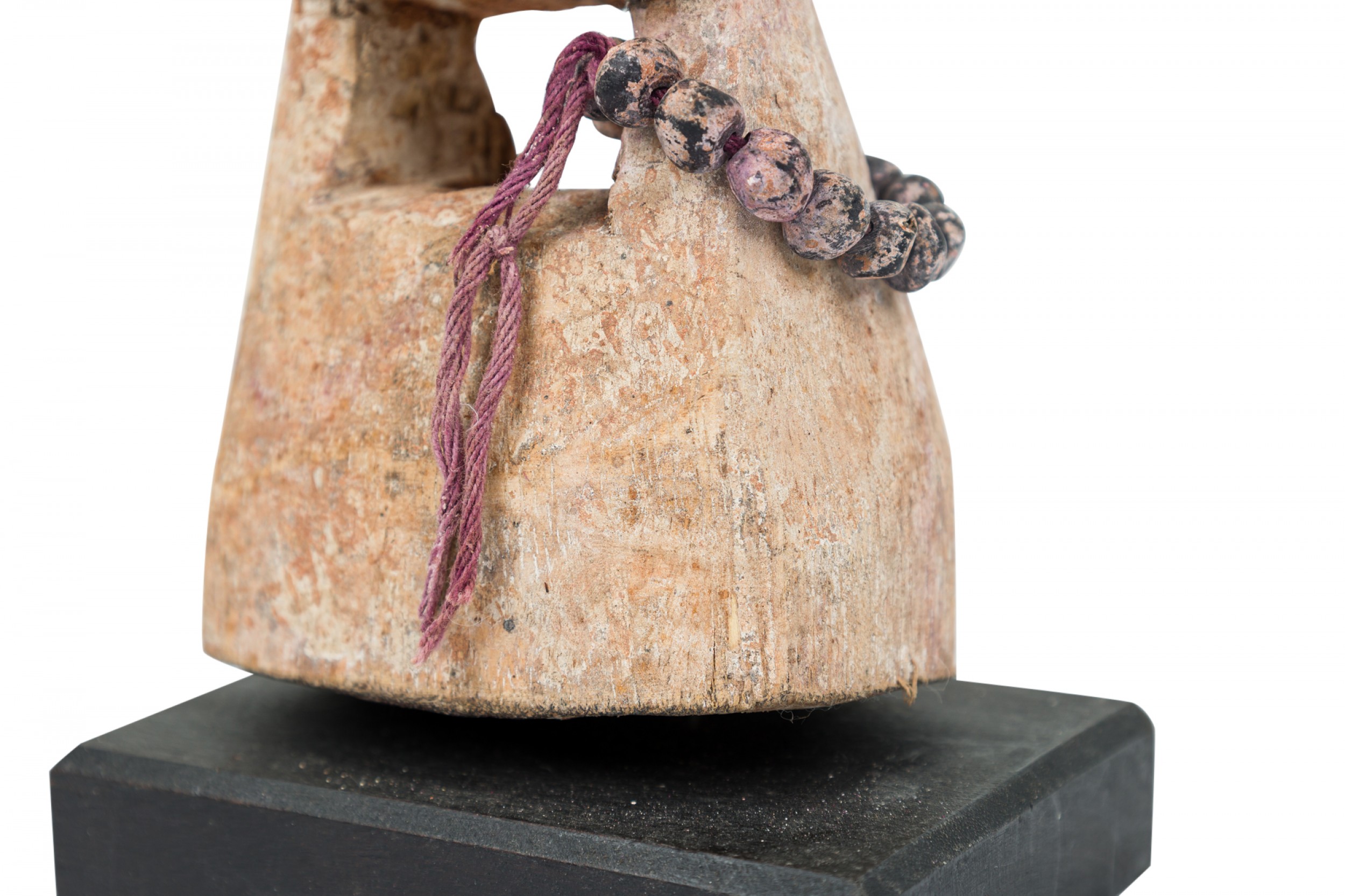 African Togo 20th Century carved wood Legba Aja (goddess of healing, herbs & knowledge) figure in a minimalist style with a string of beads wrapped around her left leg, mounted on a rectangular stand. (Literature: P. 275, African Vodun: Art, Psychology and Power by Suzanne Preston Blier)
