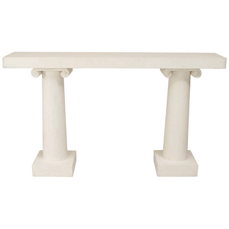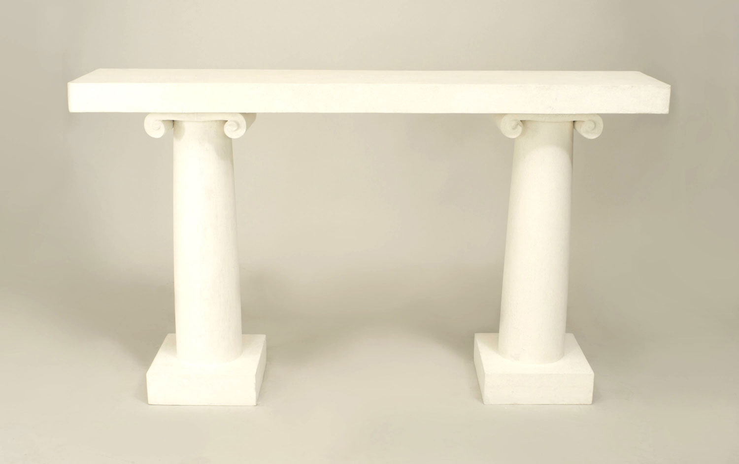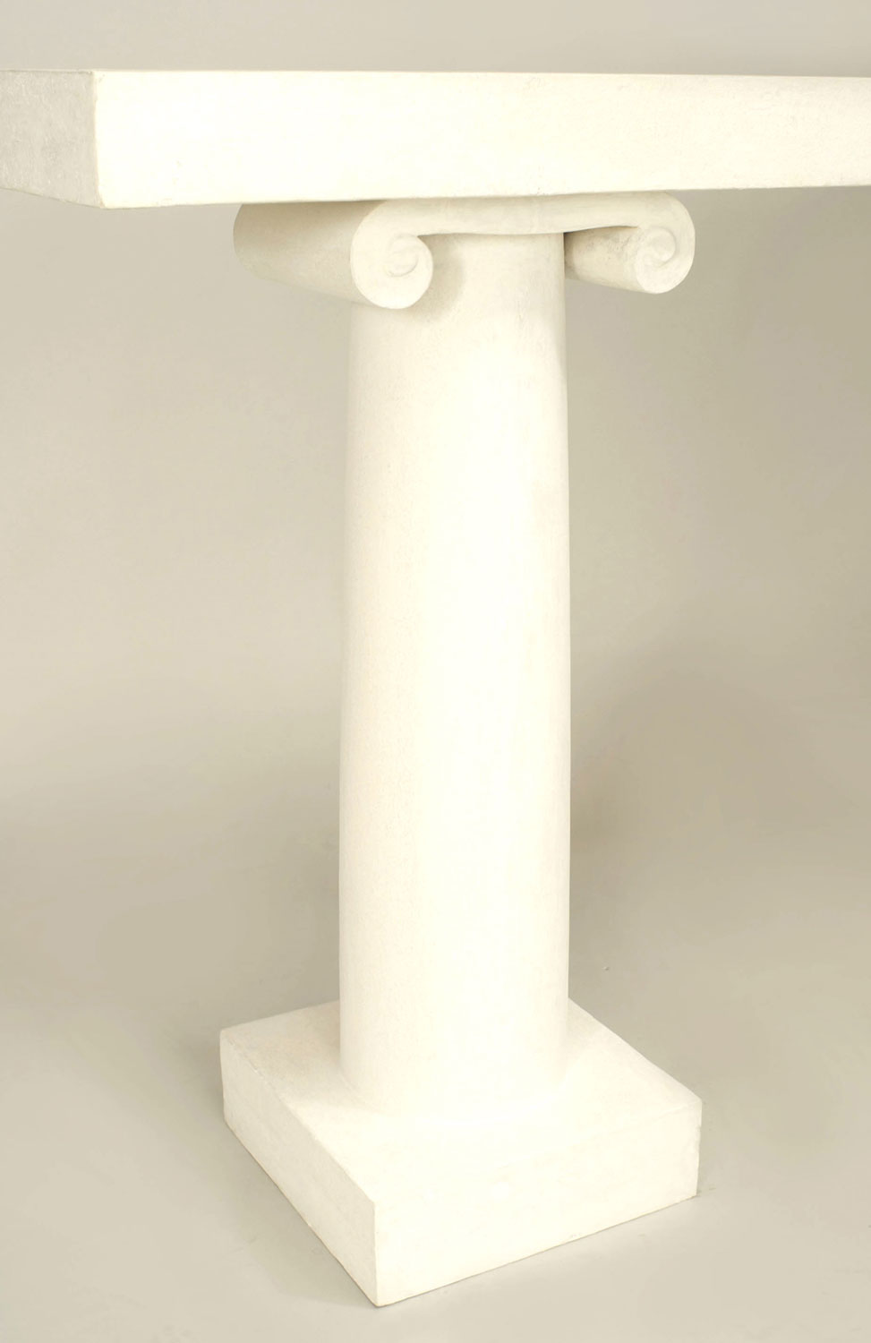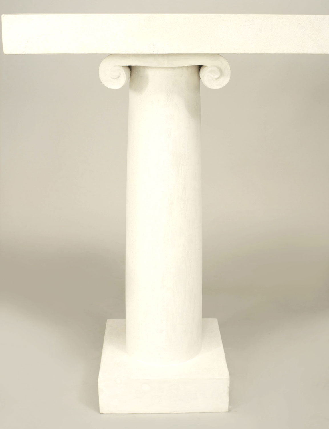 American Art Moderne (1940/50s) plaster console table with ionic column form supports.