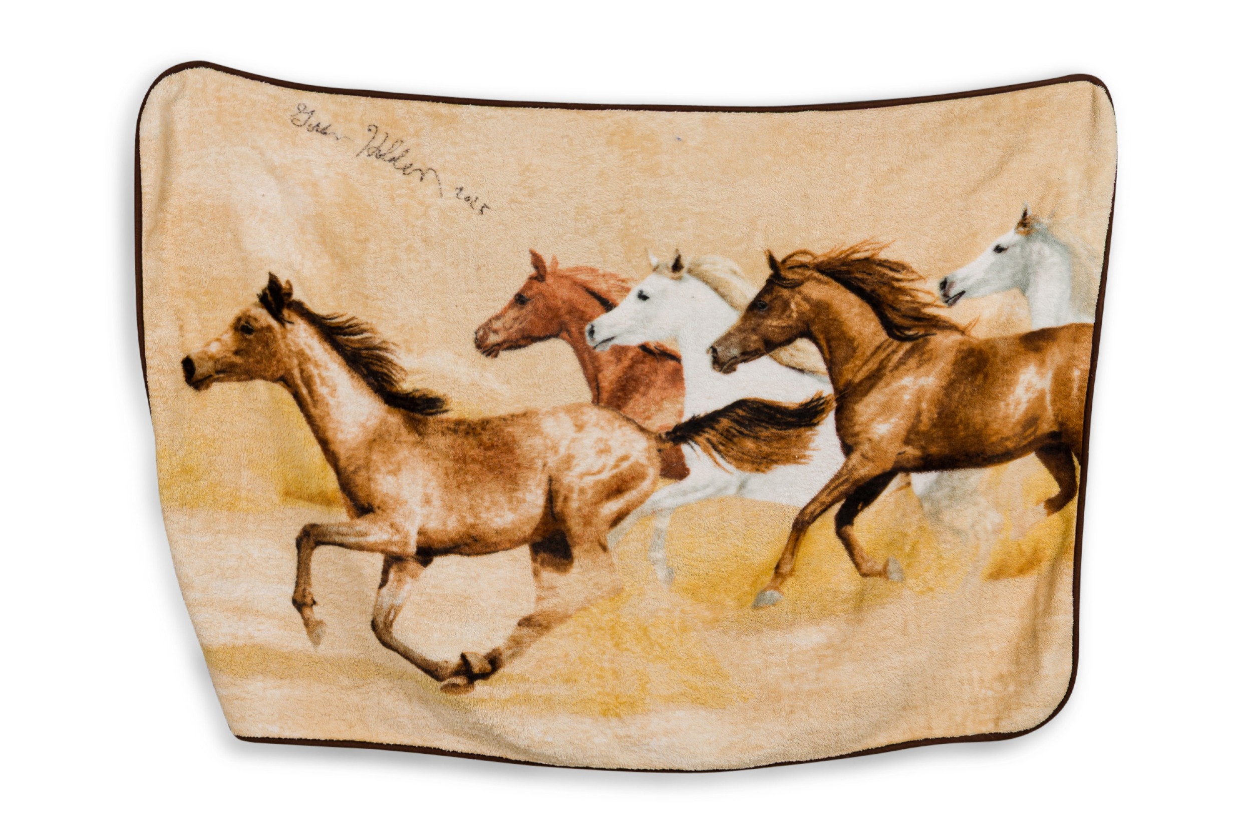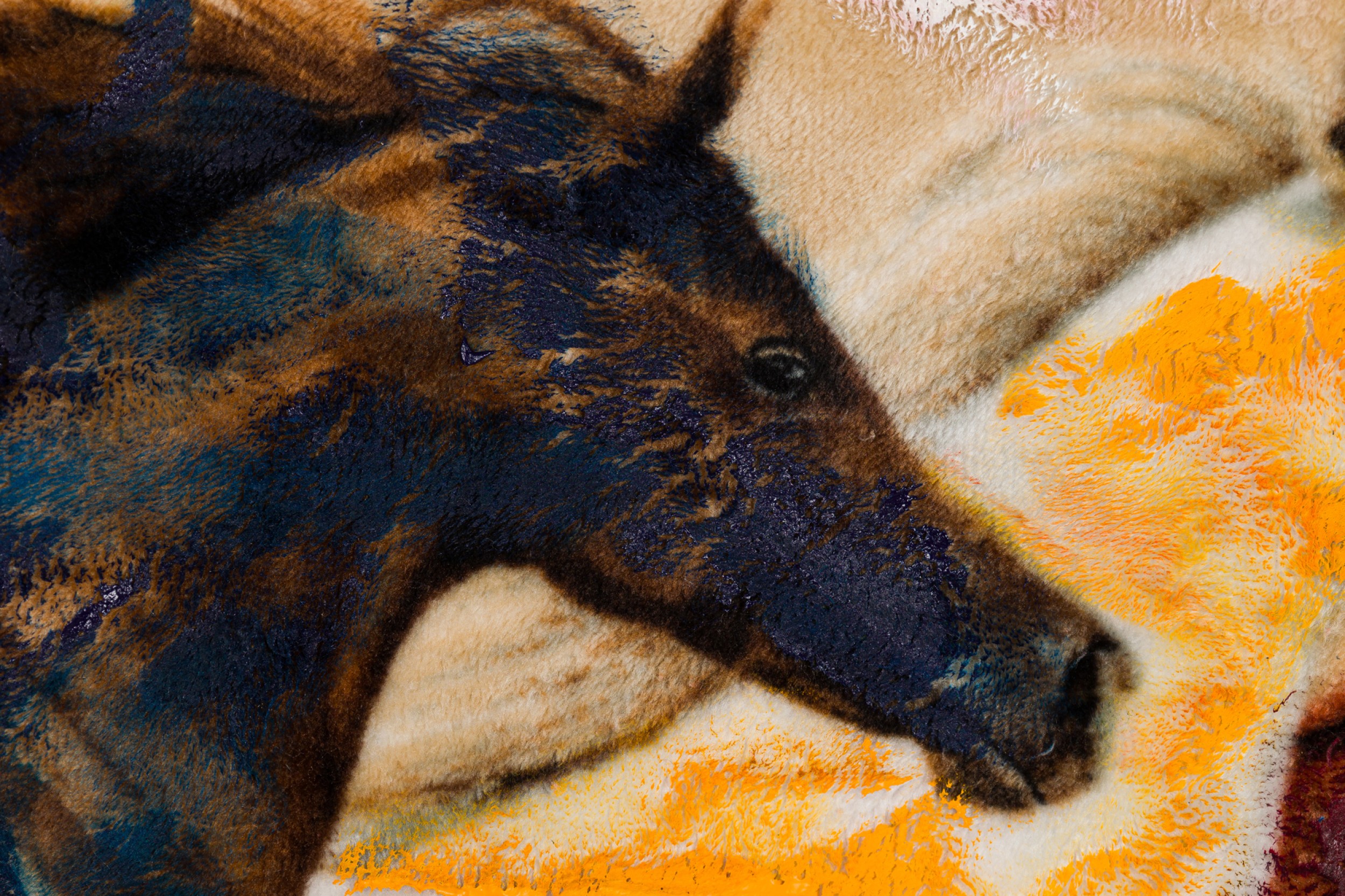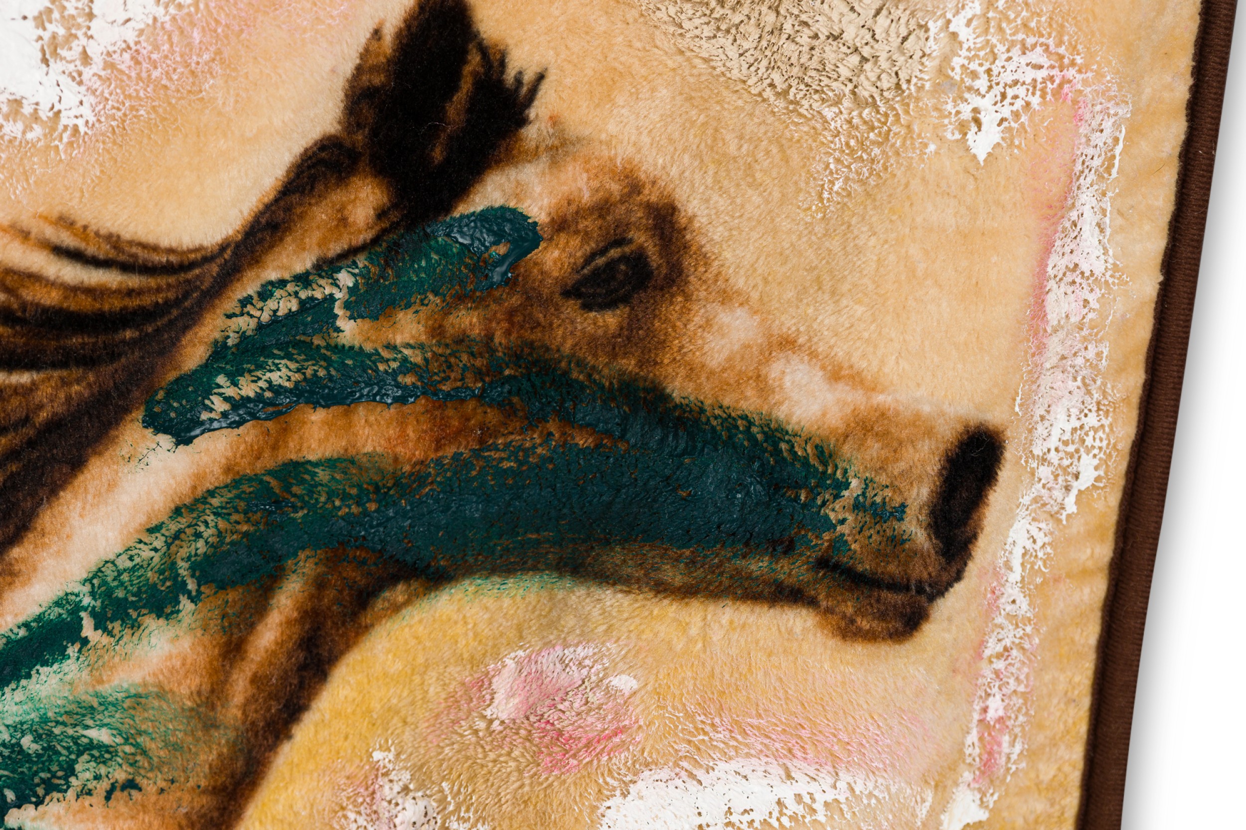 American Contemporary Readymade Artwork of a dye sublimated fleece horse blanket modified with blue and white acrylic paint and enamel (Signed Verso: GORDON HOLDEN)