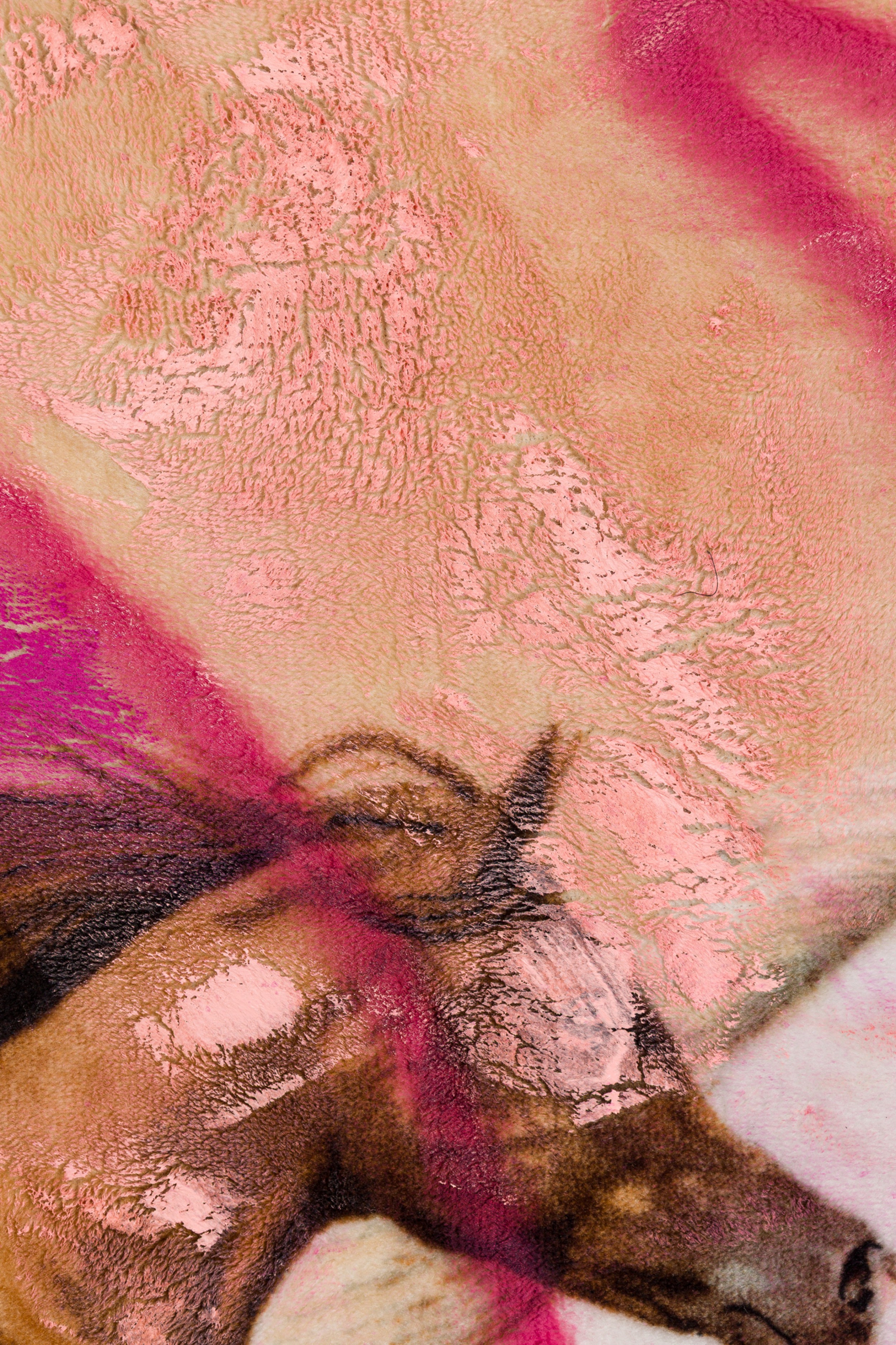 American Contemporary Readymade Artwork of a dye sublimated fleece horse blanket modified with pink acrylic paint and enamel (Signed Verso: GORDON HOLDEN)
