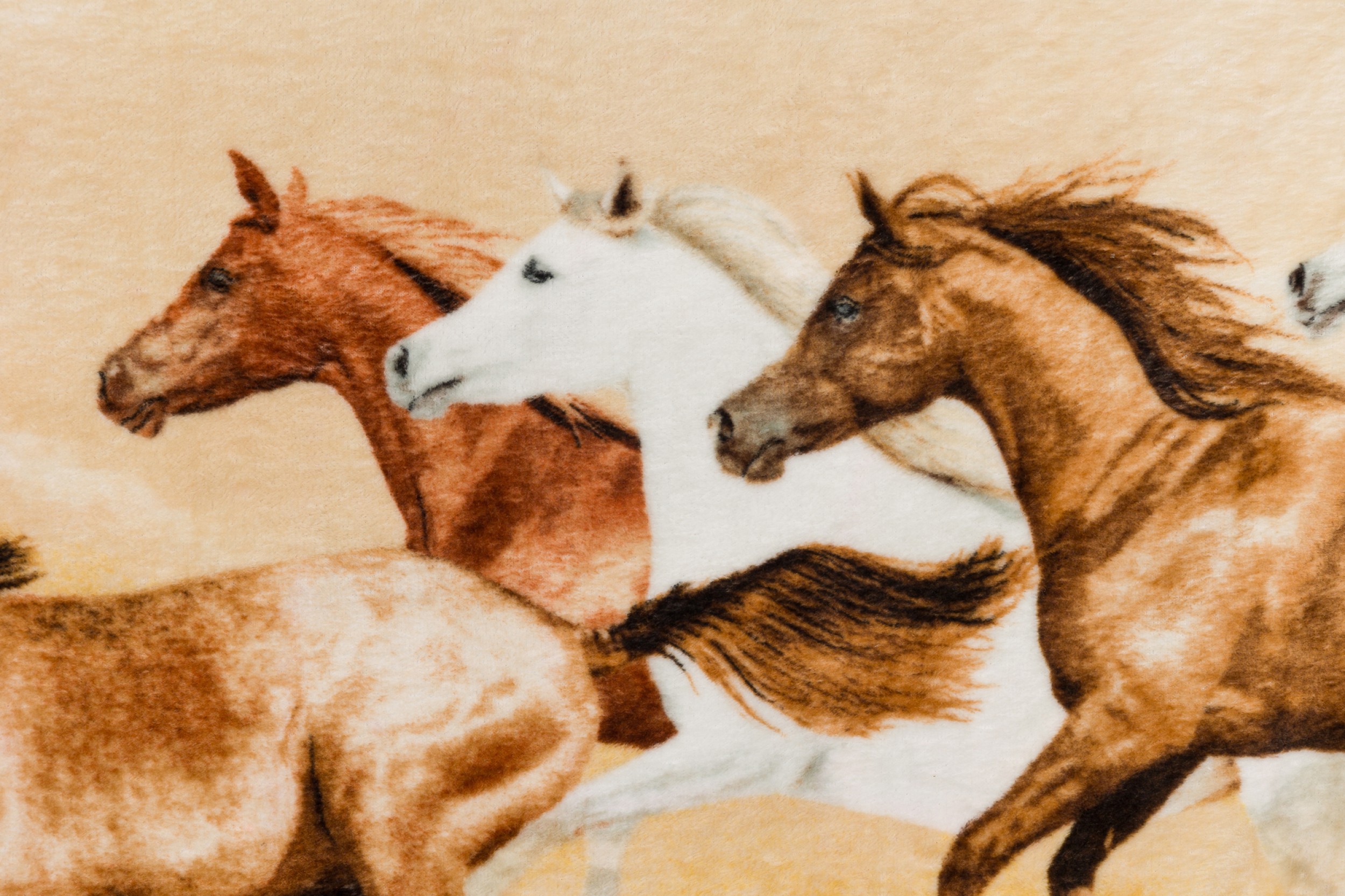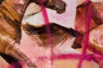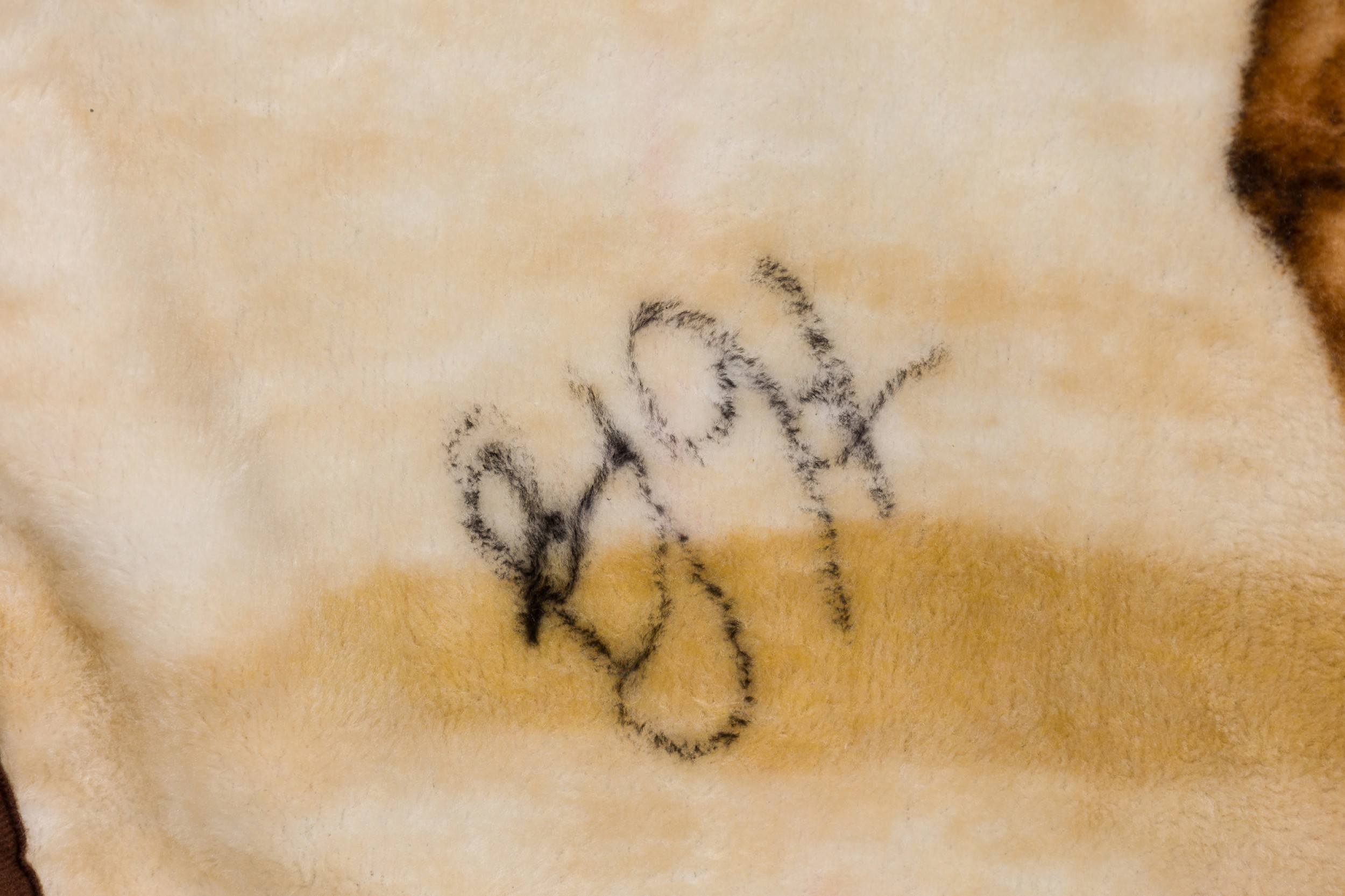American Contemporary Readymade Artwork of a dye sublimated fleece horse blanket modified with pink acrylic paint and enamel (Signed Verso: GORDON HOLDEN).