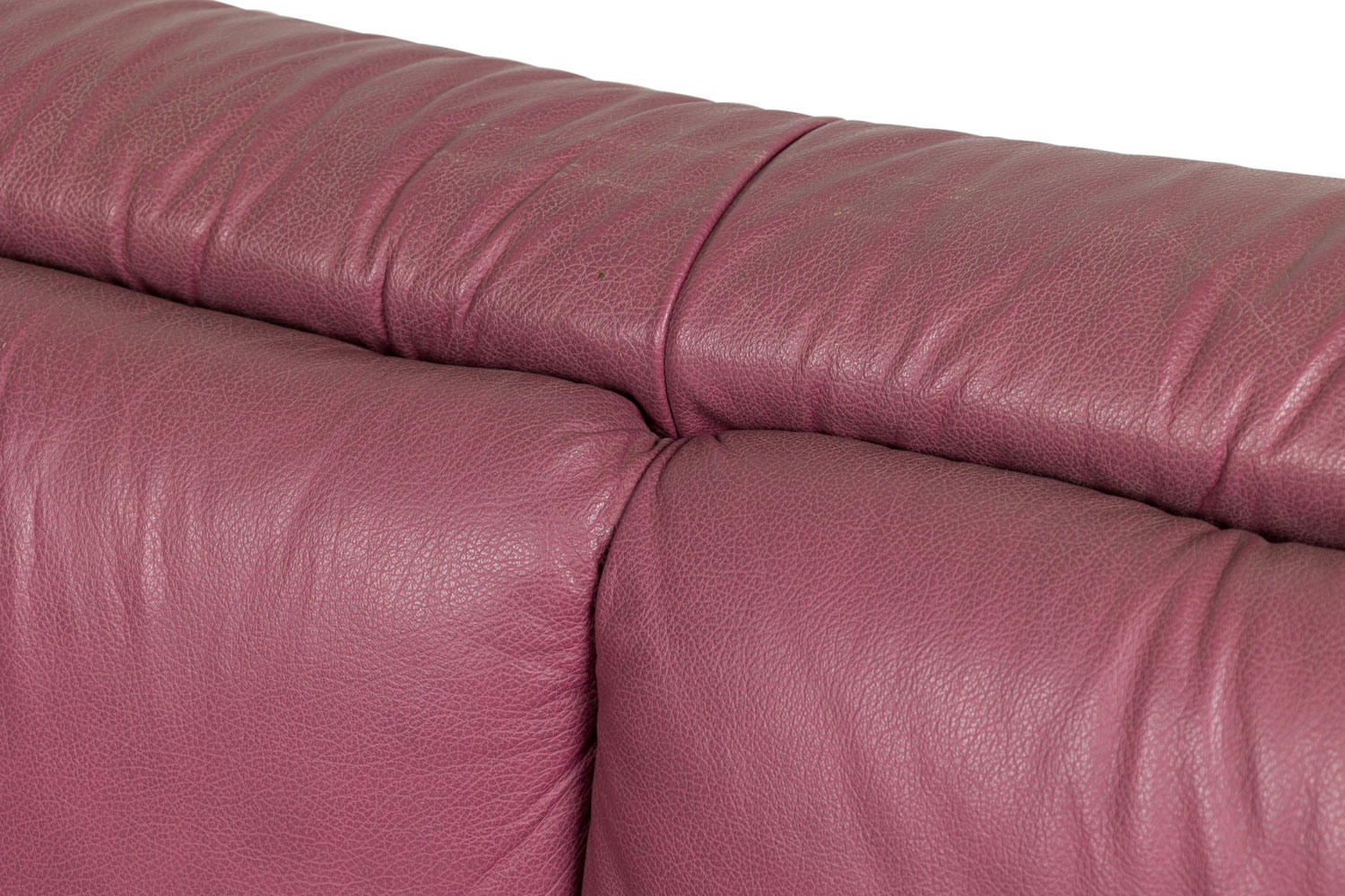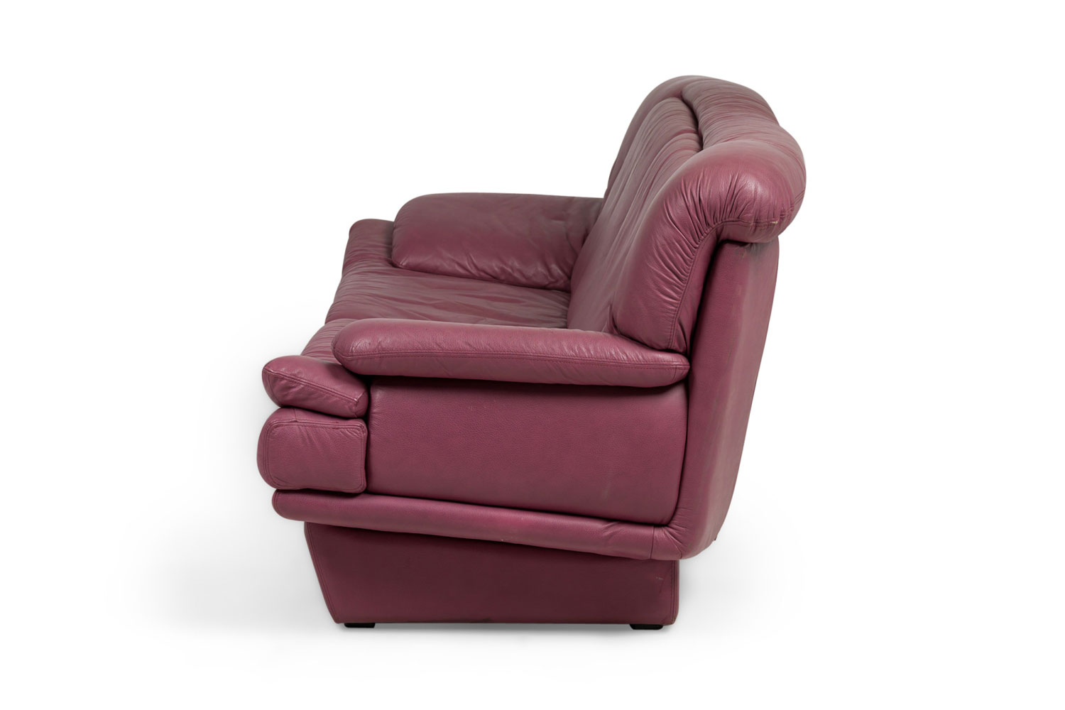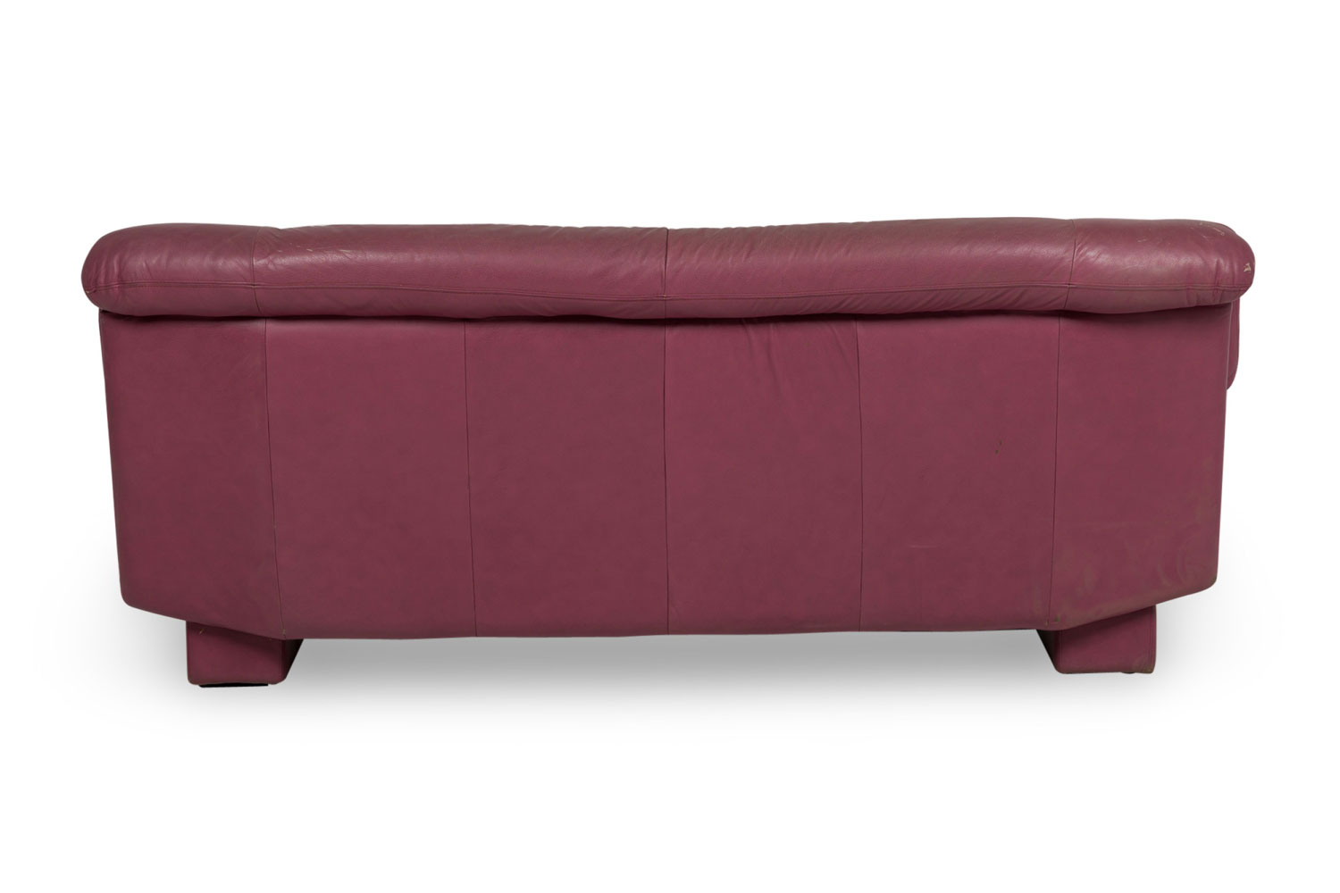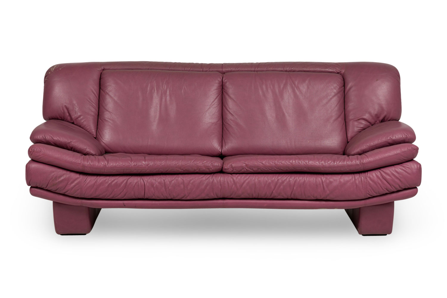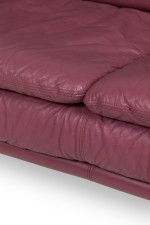 Italian Post-Modern style (1980s) large 2-seat floating sofa in a dusty lilac leather. (NICOLETTE SALOTTI for INTERLINE ITALIA) Matching smaller loveseat and club chair: 063965B&C.