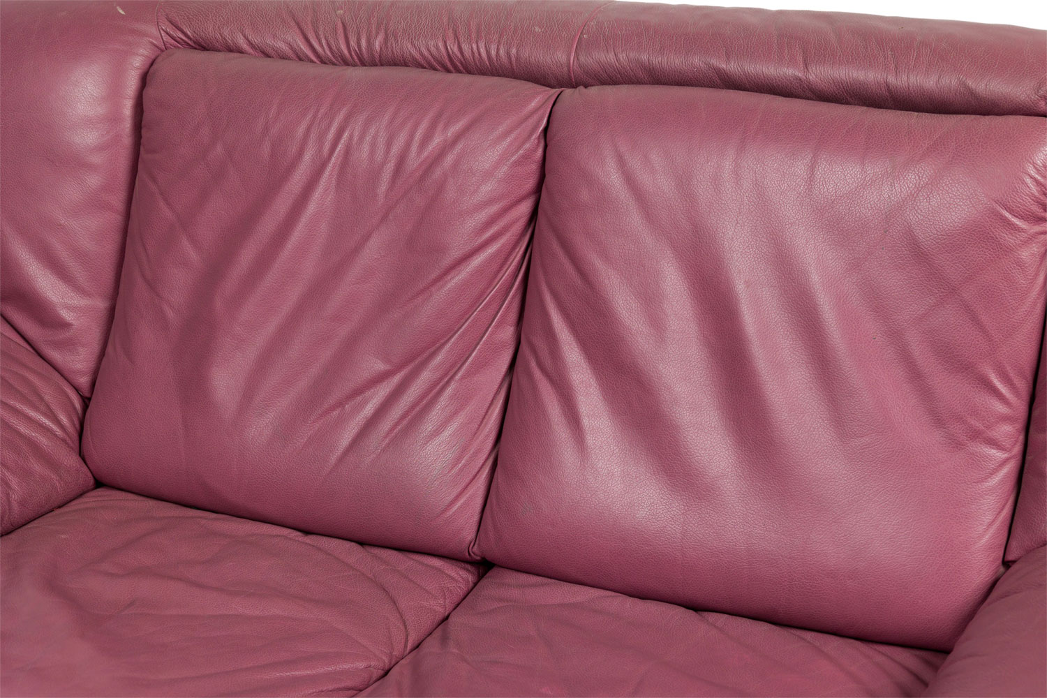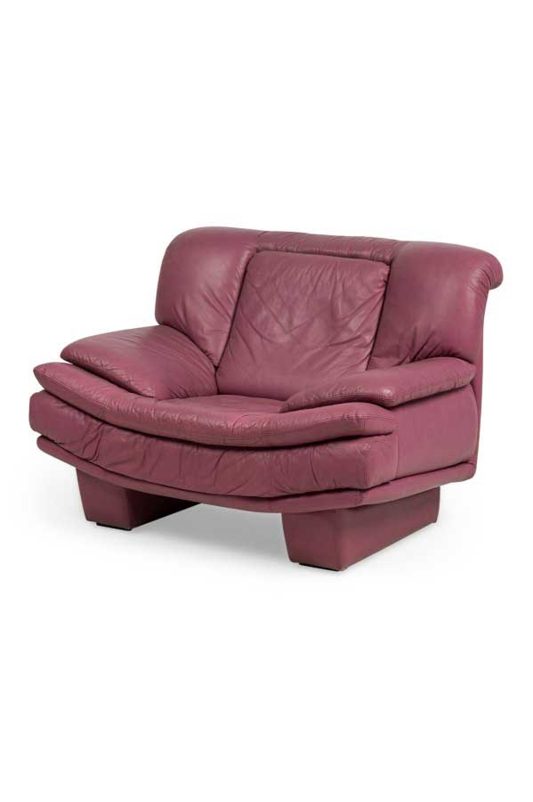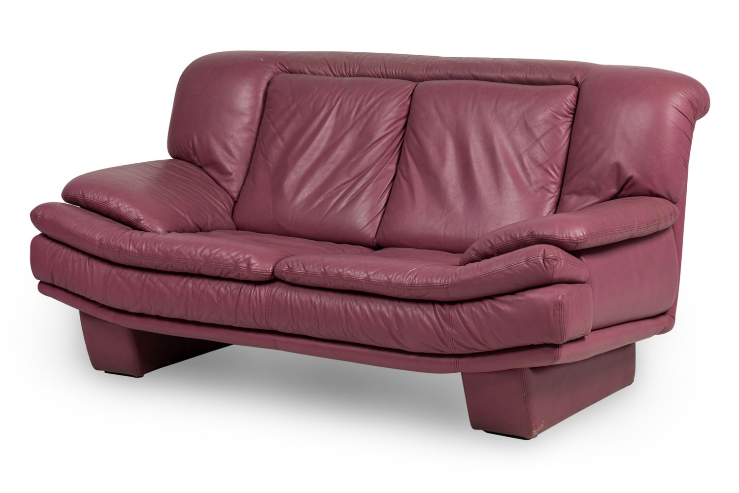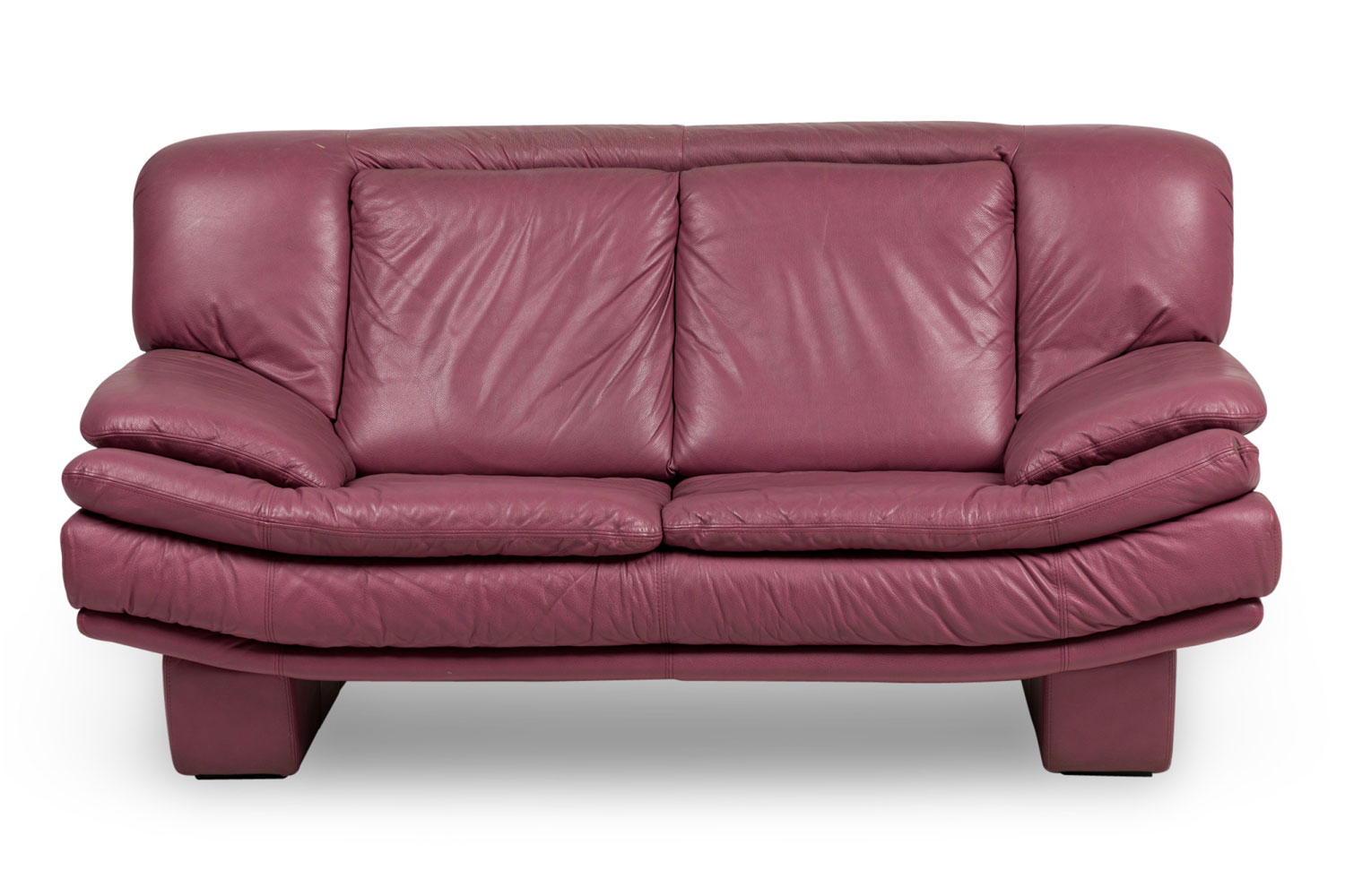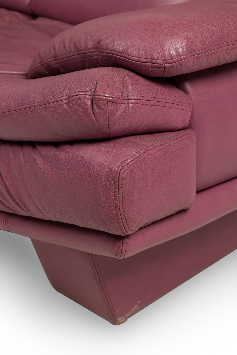 Italian Post-Modern style (1980s) 2-seat floating sofa in a dusty lilac leather. Italian Post-Modern style (1980s) Matching sofa and single seat: 063965A&C