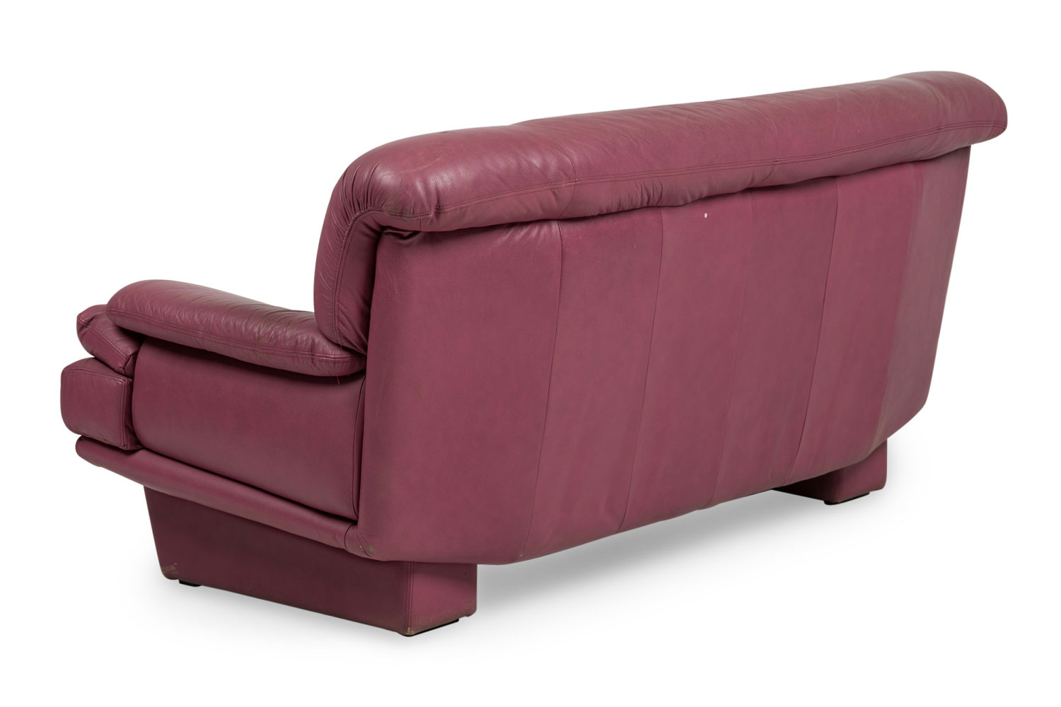 Italian Post-Modern style (1980s) 2-seat floating sofa in a dusty lilac leather. Italian Post-Modern style (1980s) Matching sofa and single seat: 063965A&C.