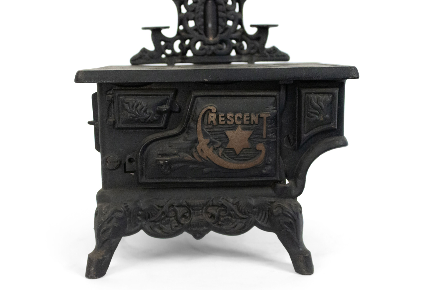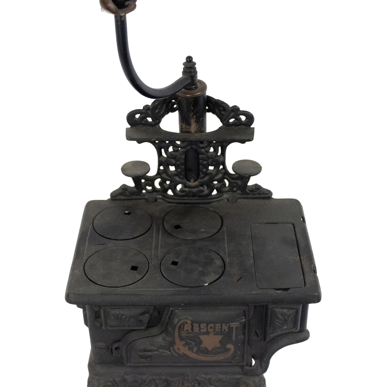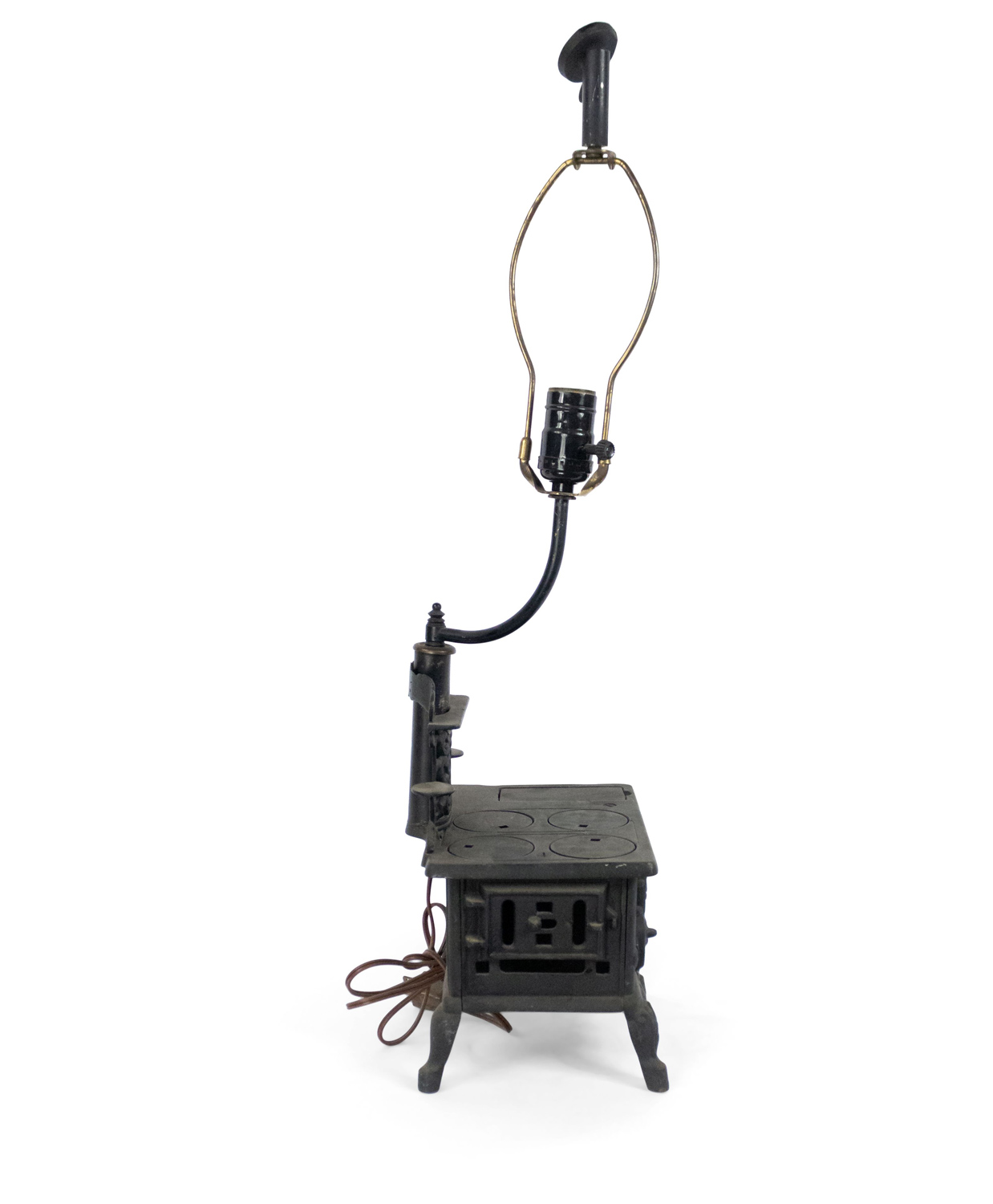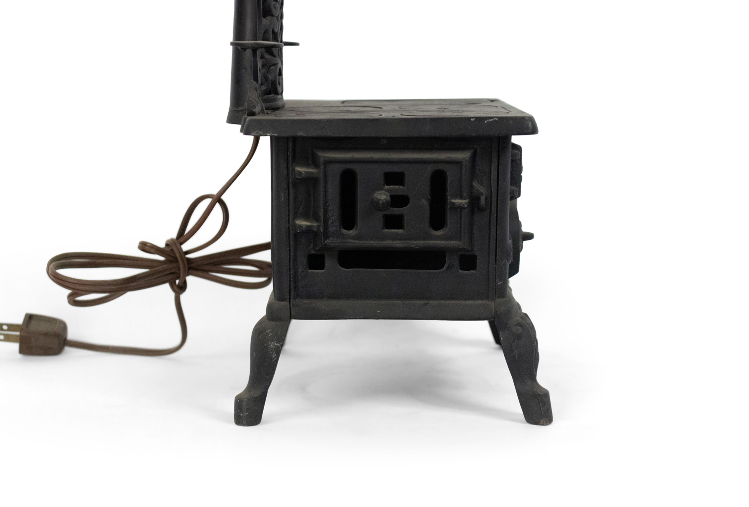 American Country-style (20th Century) black iron stove shaped table lamp.