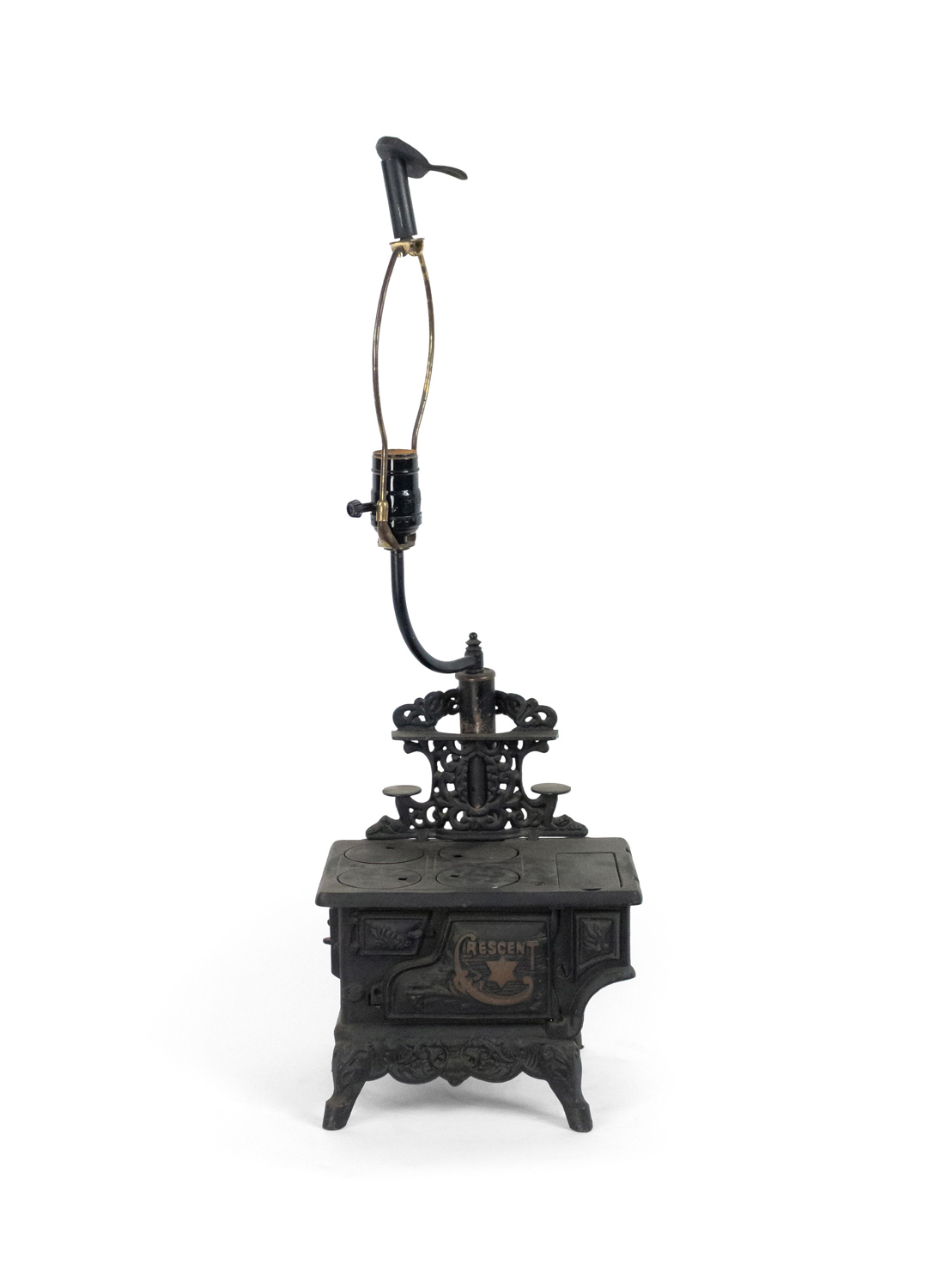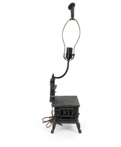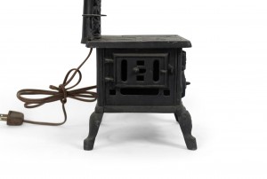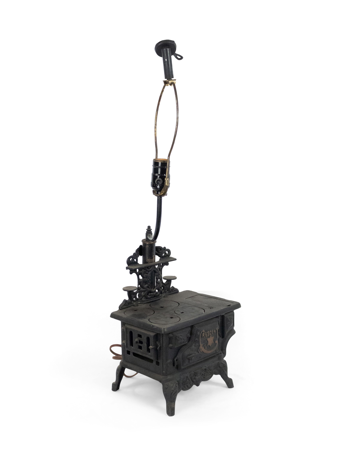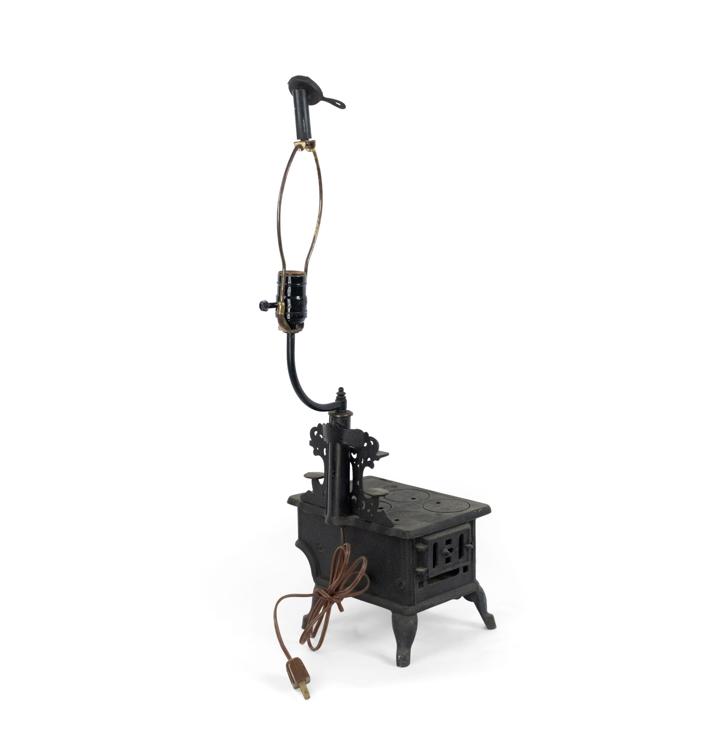 American Country-style (20th Century) black iron stove shaped table lamp..