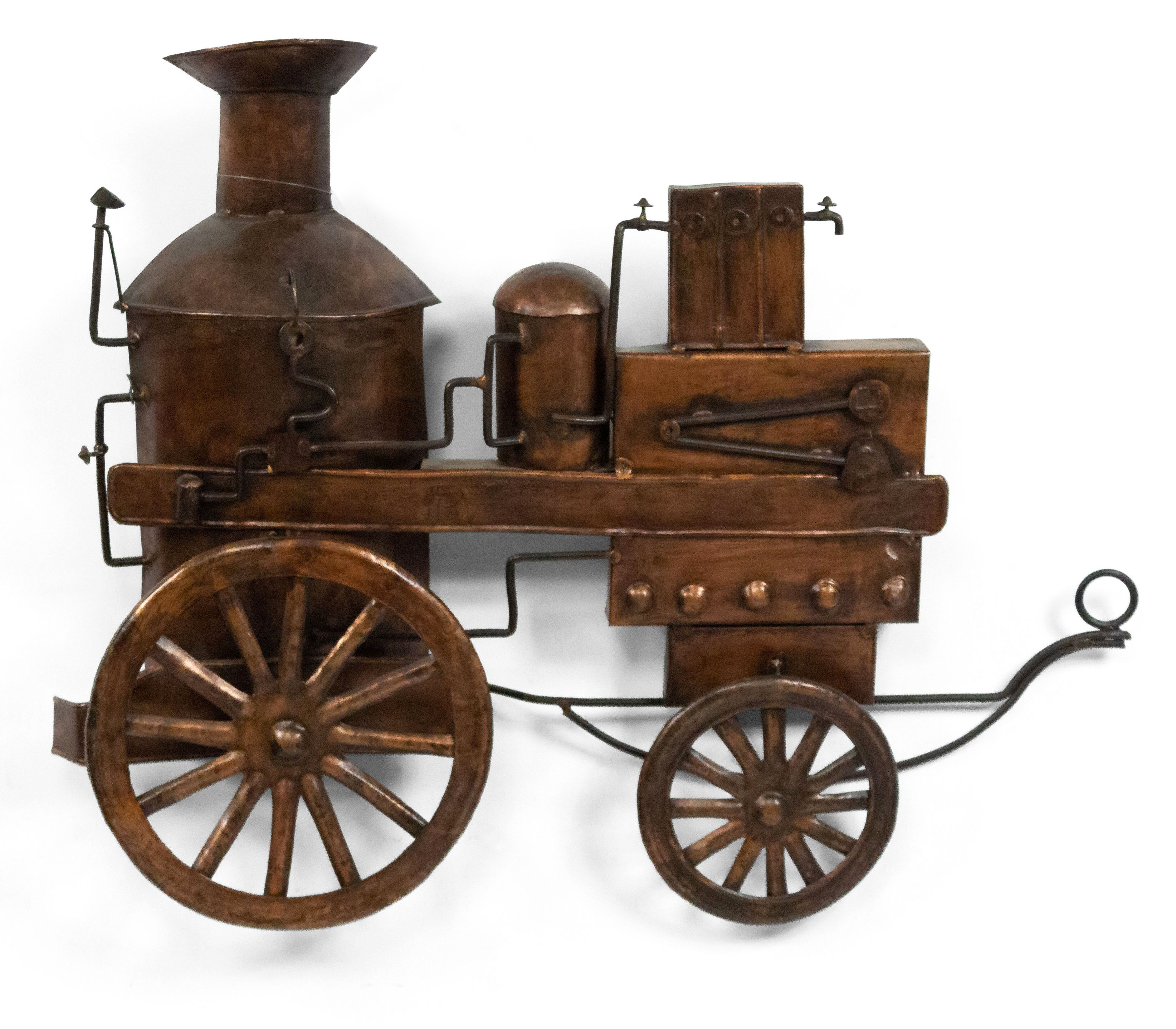 American Country style (20th Century) copper wall plaque of 2 wheel steam engine..