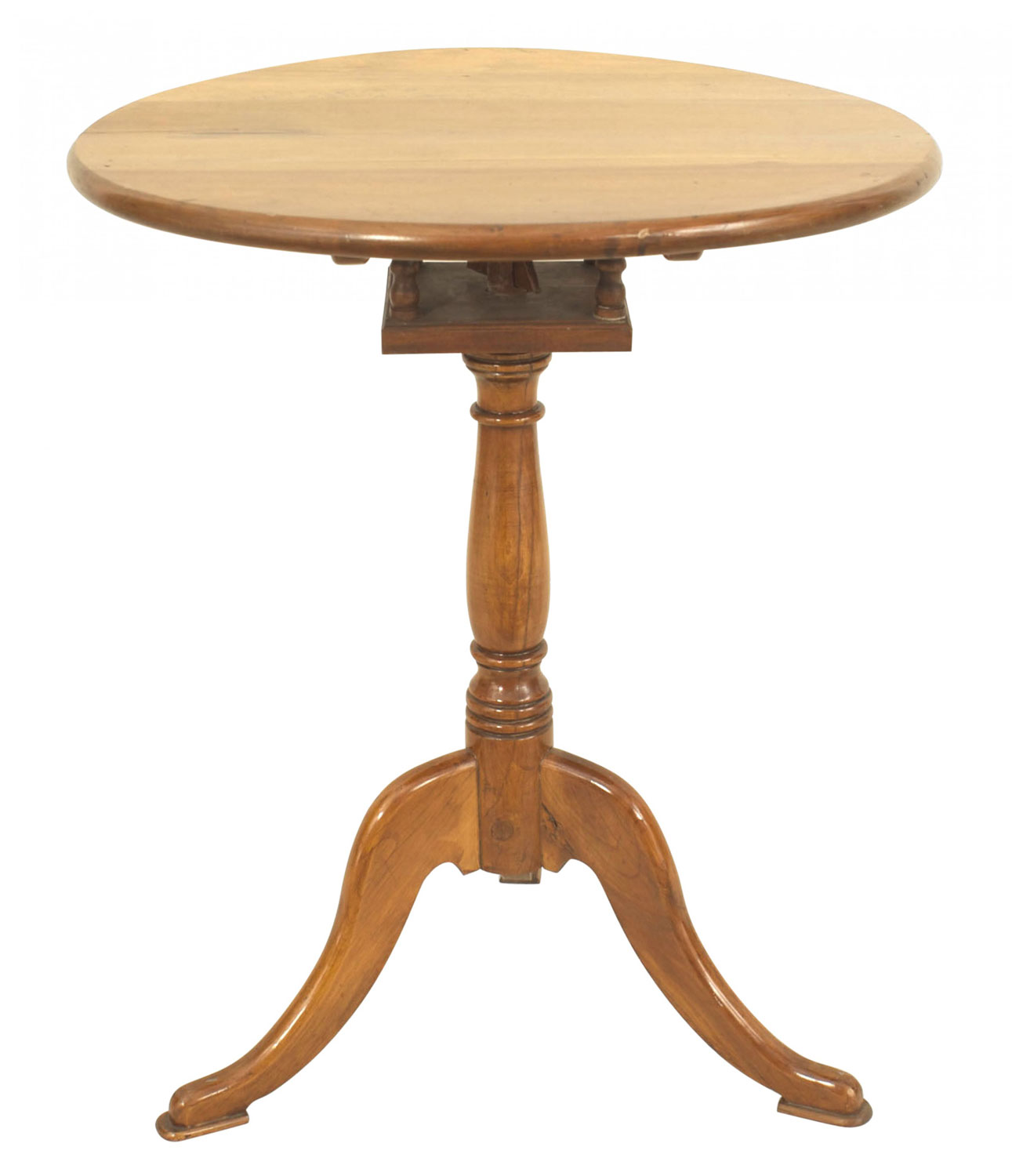 American Country (20th Century) maple pedestal base round tilt top end table.