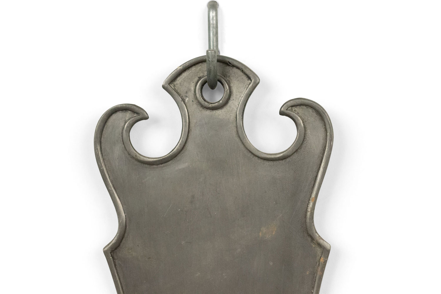 PAIR of American Country pewter wall sconces with single arms and pediment tops. (PRICED AS PAIR).